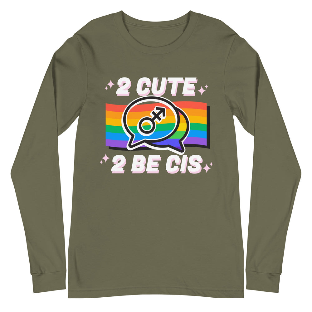So, my dears, wear this 2 Cute 2 Be Cis Unisex Long Sleeve T-Shirt with all the PRIDE with which we intended it. Let it be a symbol of your identity, a canvas for your expression, and a banner of your belonging. Because in this tee, you're not just wearing fabric; you're wearing your heart on your sleeve, quite literally. And remember, in a world where you can be anything, be proudly, unequivocally, fabulously you. x