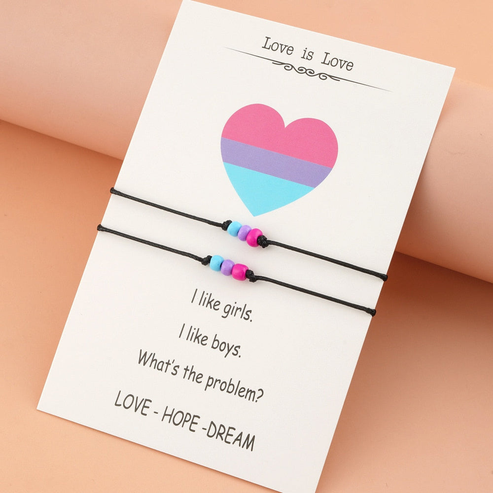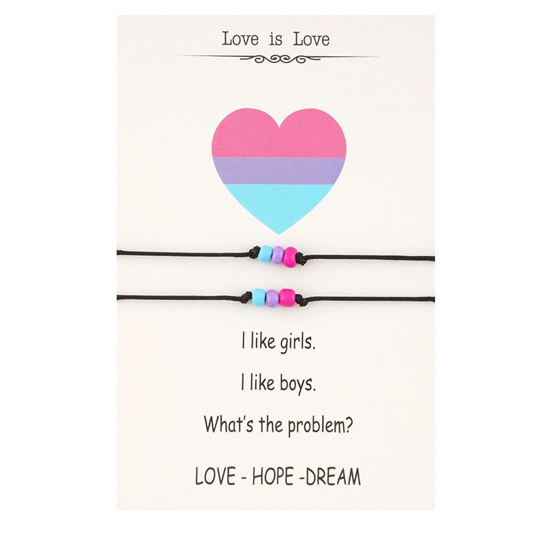 Show the world that LOVE IS LOVE y'all with this colorful addition to your wrist. It is a two-piece so perfect for giving to your bestie too!