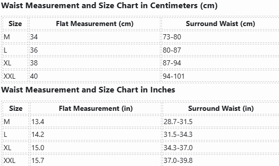 | Size | Flat Measurement (cm) | Surround Waist (cm) |