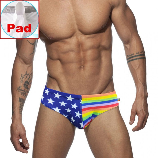 Stand out at the beach, by the pool, or wherever you can get away with it — these All American Queer Swim Briefs are a summer essential. Get yours now.