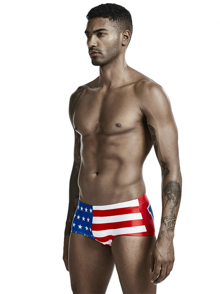 Let's get soaking wet! Lap up those cosmic rays and show off your gorgeous body in our funky and sexy American Flag Swim Trunks. The lifeguard on duty will have difficulty not staring at that booty of yours. Anchors away, you're off to bigger and better things!