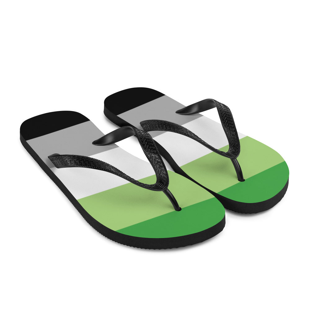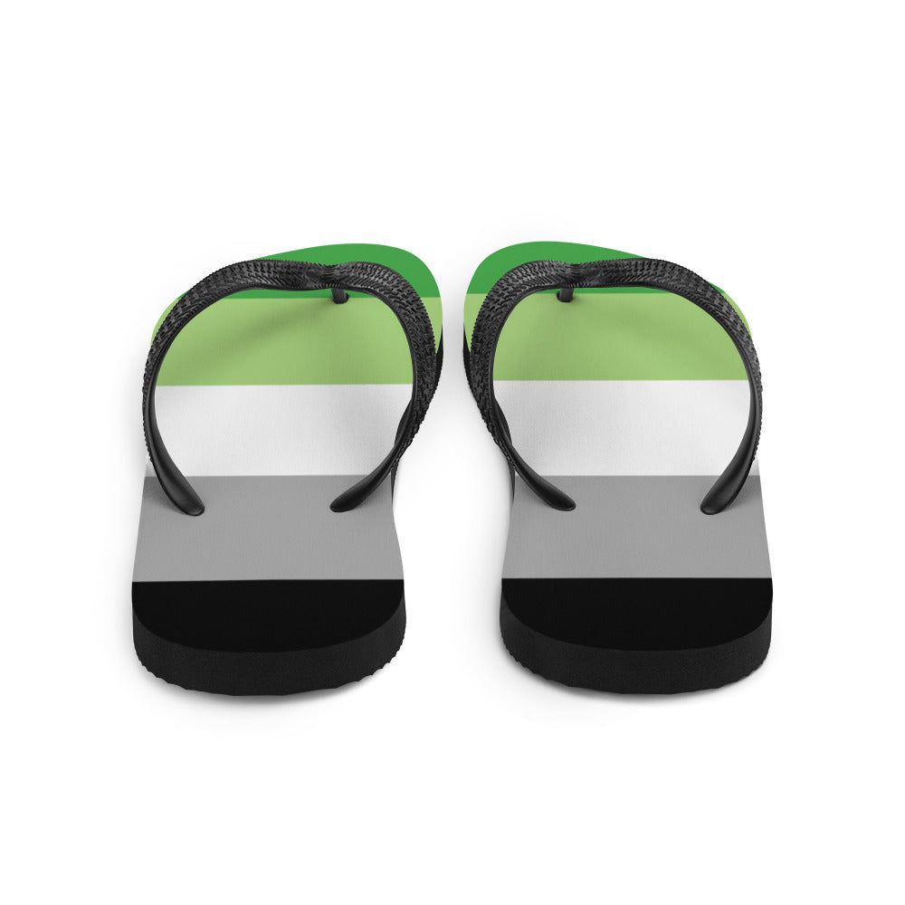 Prepare for an adventurous and carefree summer with a pair of colorful Aromantic Pride Flip-Flops that are meant just for you!