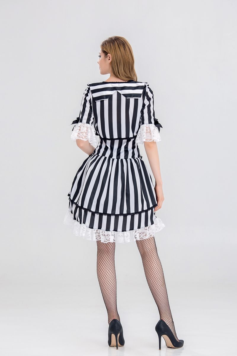 This ever-so-kinky costume evokes the creepy film Beetlejuice, as anyone who has seen it can surely attest.