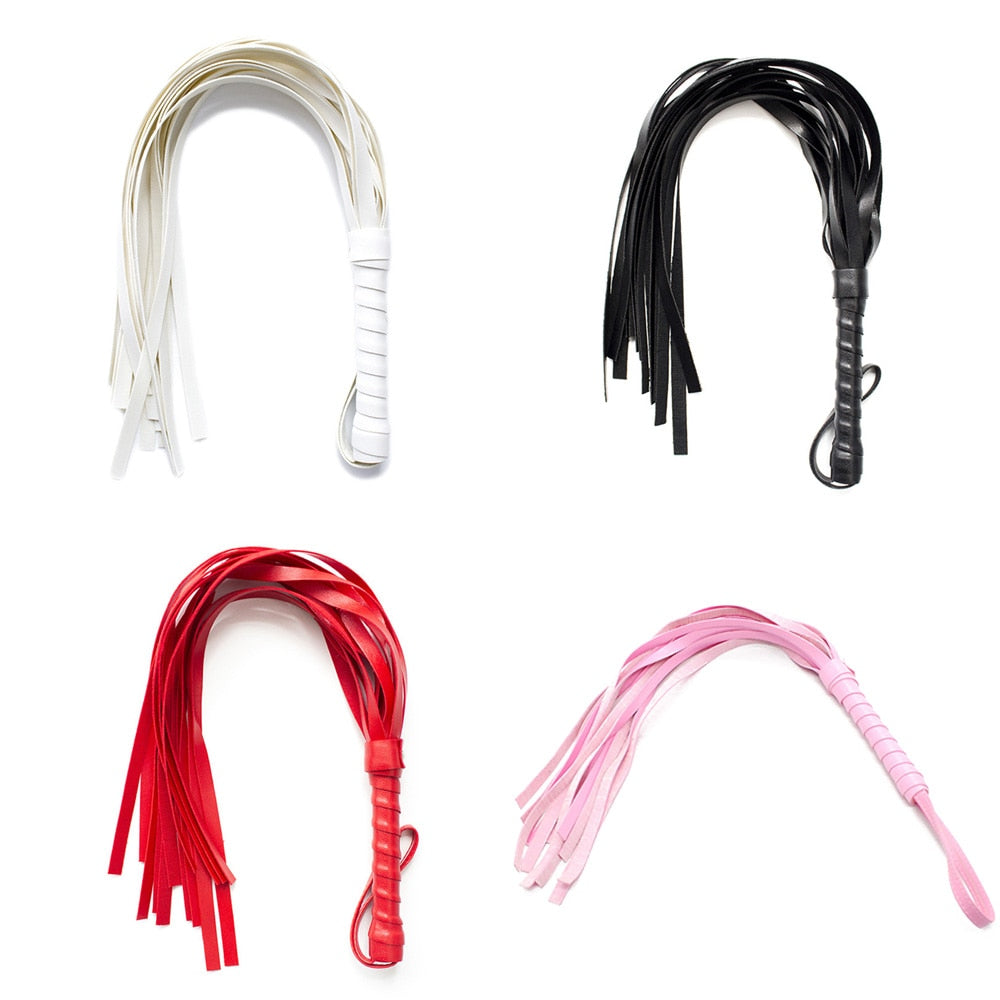 The BDSM Fetish Whip comes in a variety of colors (if you want to match your outfit), has a sturdy handle and a wild bunch of leather floggers. To keep a better grip on things, this whip comes, of course, with an end handle!