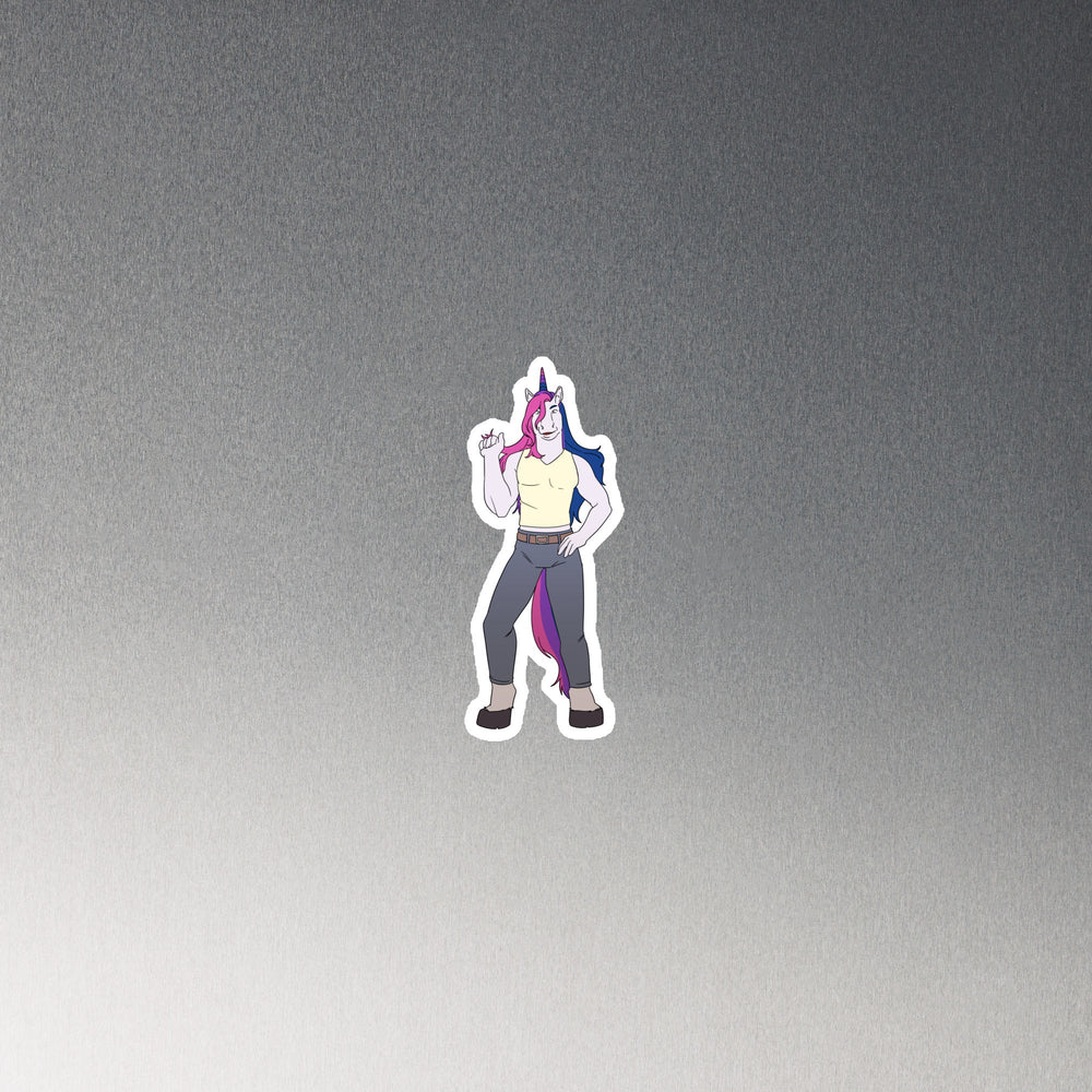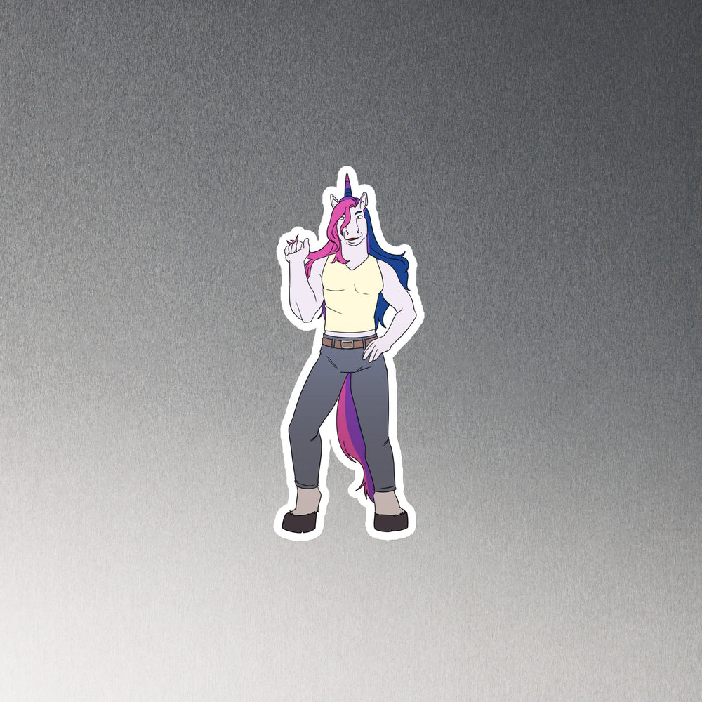 Darlings, step right up for the grand reveal of the pièce de résistance in home décor, the magnetic marvel known as the Bisexual Unicorn Magnet.