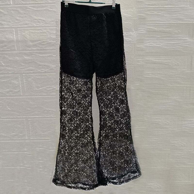 Strike a pose and step into the scene with the “Black Flared Lace Trousers,” the latest must-have that’s about to make your wardrobe feel like the VIP section of the fiercest fashion show. These aren’t just pants; they’re the proclamation of a fashion-forward, fabulous you, with a side of 'watch me werk it down the boulevard.'