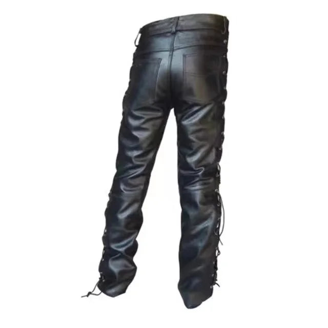 The sleek PU leather is soft yet unyielding, hugging your body with a feeling of dominance and confidence. The lace-up detailing on the sides is both a touch of seduction and a statement of control—letting you adjust to your perfect fit, exposing just enough to tease, but never revealing everything. This is not just fashion; this is an experience. These pants will have you feeling like you're in complete command, whether you're at a kink event, owning the streets, or simply embracing your personal power.