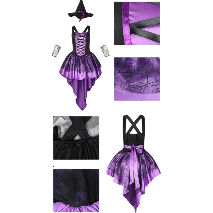 This bewitching costume melds the traditional witch aesthetic with a modern twist, featuring intricate lace-up details that allow you to adjust for the perfect seductive fit. Made from the luxurious, soft touch of modal fabric, it drapes gracefully over any body, enhancing your silhouette while promising comfort that lasts throughout any coven gathering or moonlit dance. The fluttering sleeves and asymmetrical hem add just the right touch of drama, ensuring that you look every bit the part of a contemporary sorcerer with timeless taste.