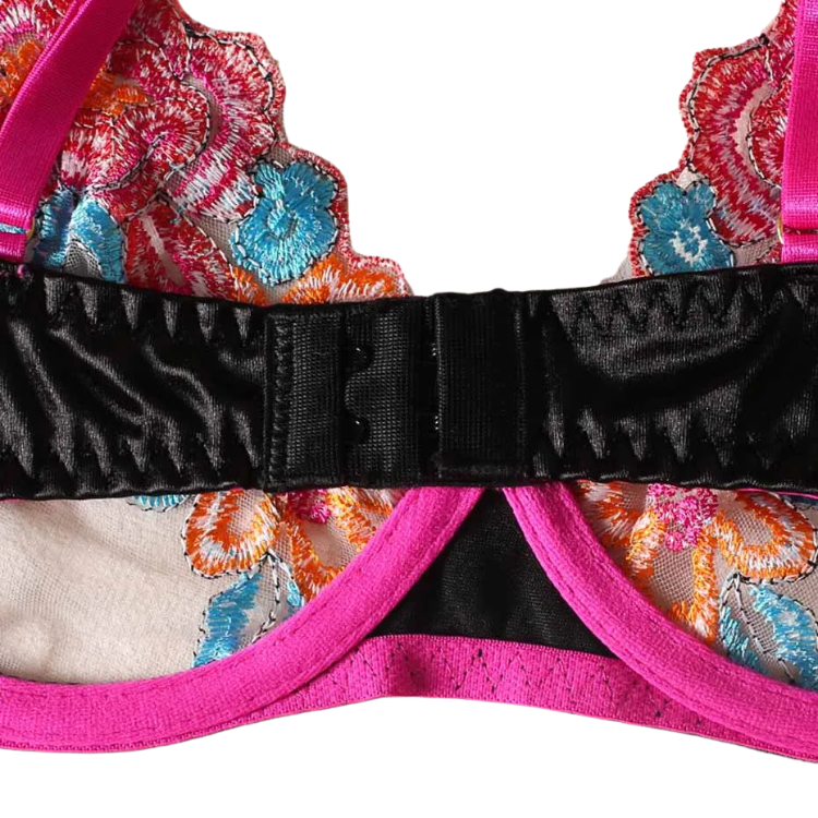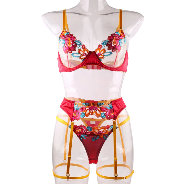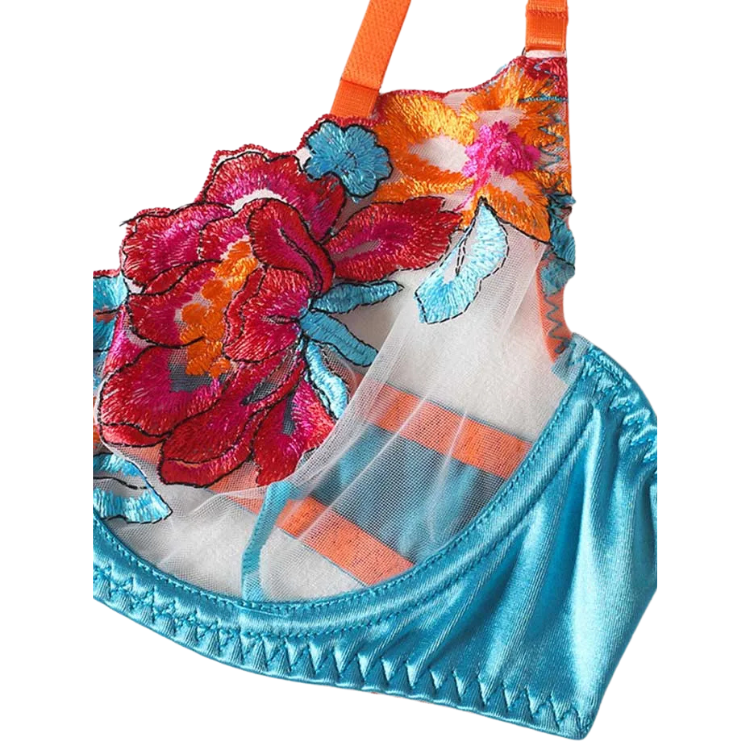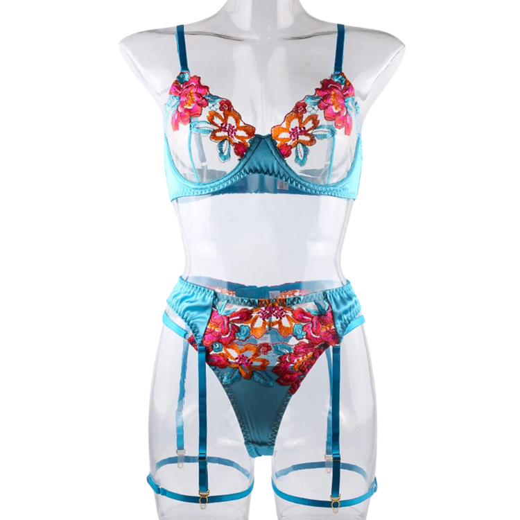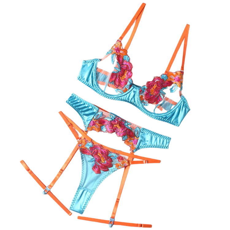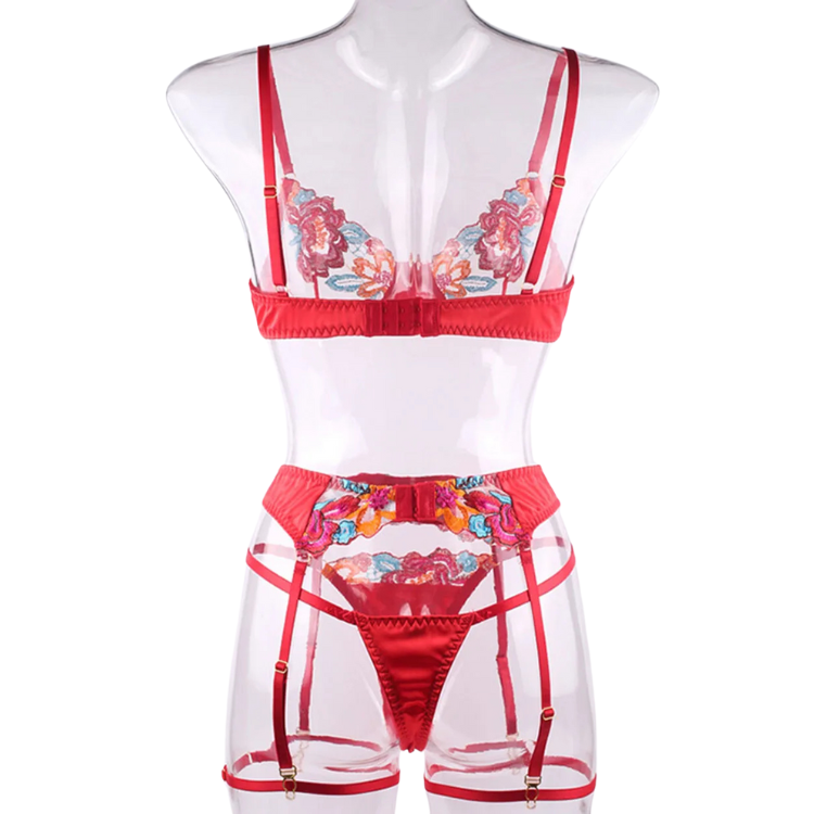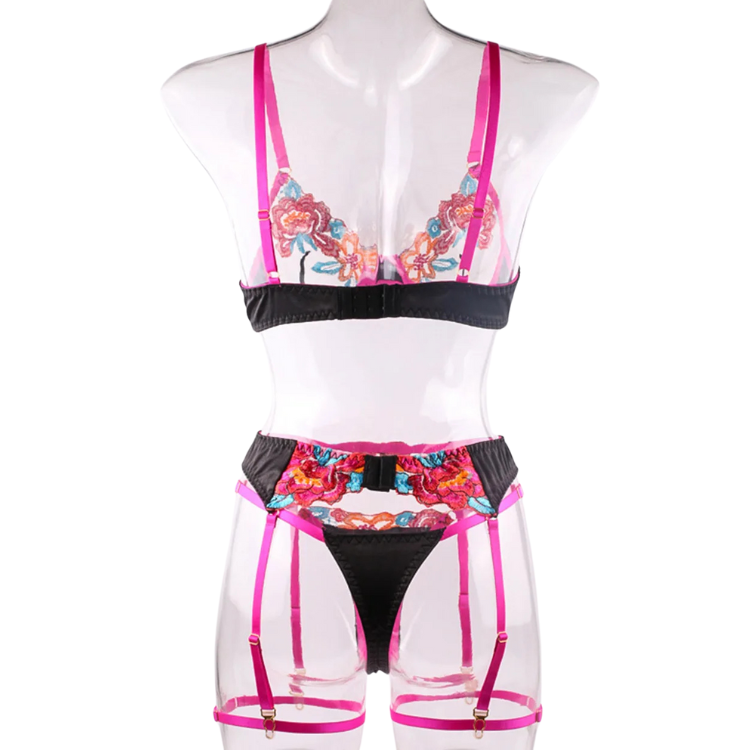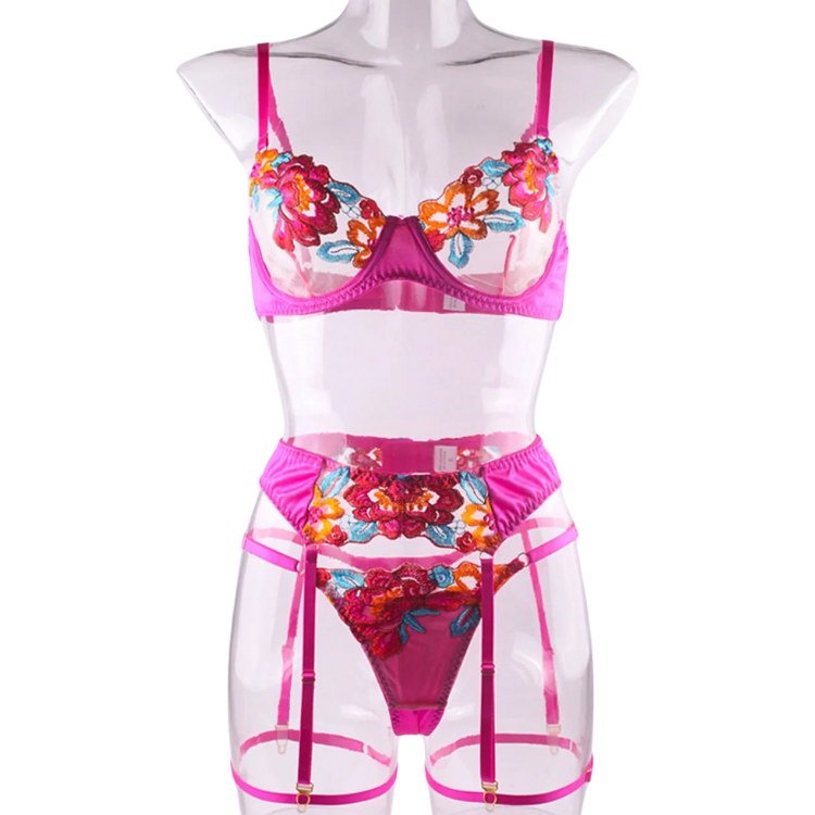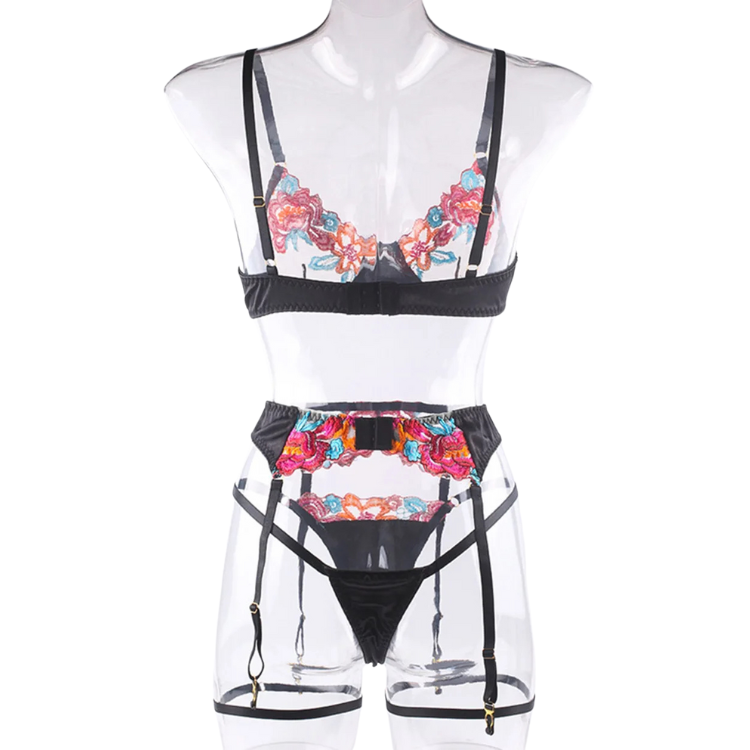 This enchanting ensemble draws inspiration from the delicate dance of flowers in the breeze, transforming that natural elegance into a form-fitting masterpiece that highlights every asset with its intricate lace detailing and flirtatious cutouts. The plunging neckline serves as a bold declaration of confidence, while the whisper-thin lace whispers secrets of nights filled with passion and liberation.