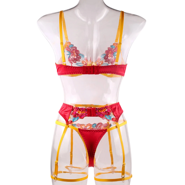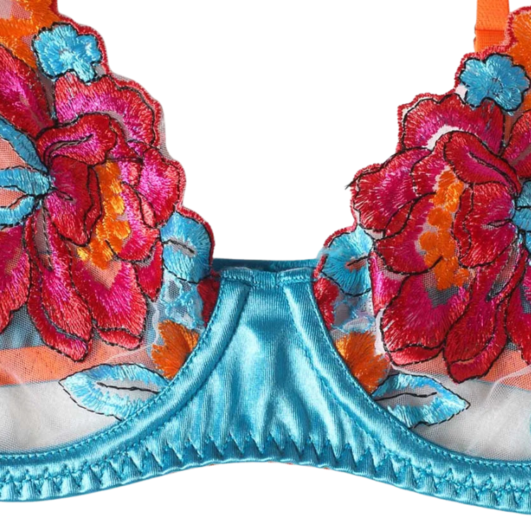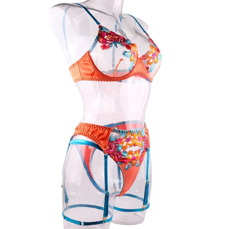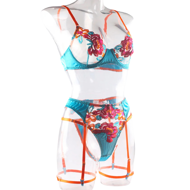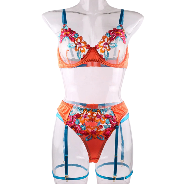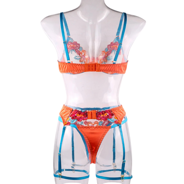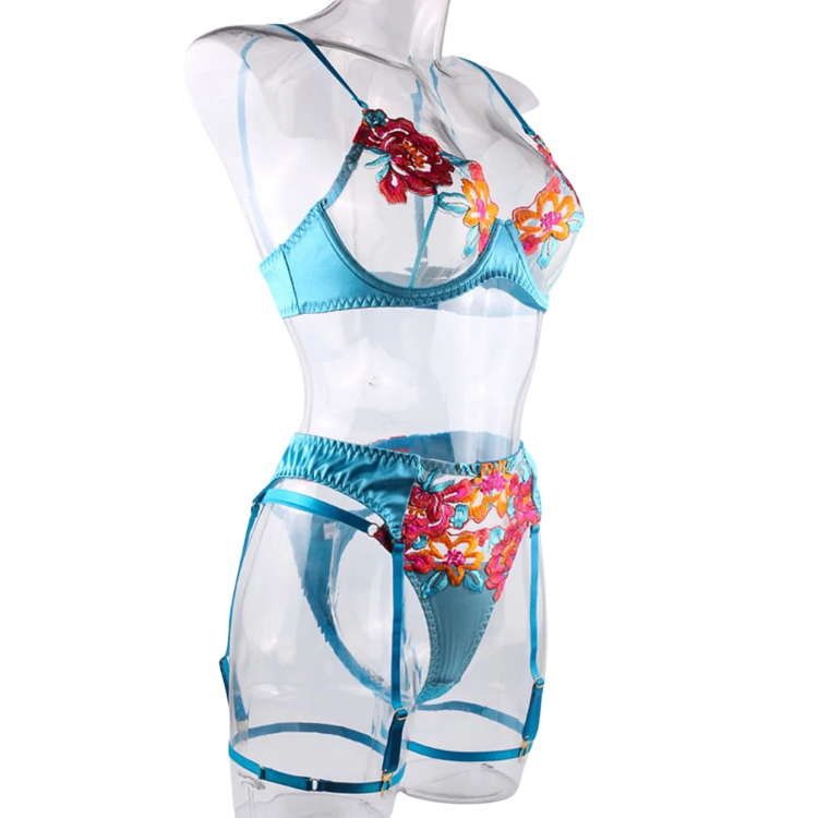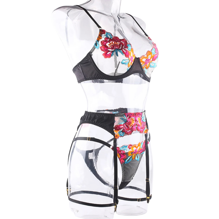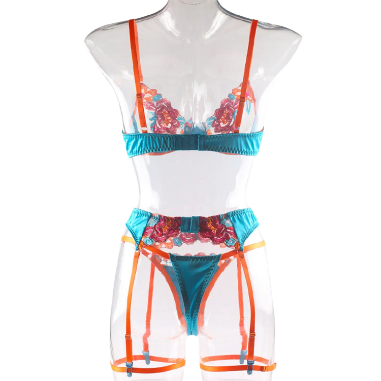 This enchanting ensemble draws inspiration from the delicate dance of flowers in the breeze, transforming that natural elegance into a form-fitting masterpiece that highlights every asset with its intricate lace detailing and flirtatious cutouts. The plunging neckline serves as a bold declaration of confidence, while the whisper-thin lace whispers secrets of nights filled with passion and liberation.