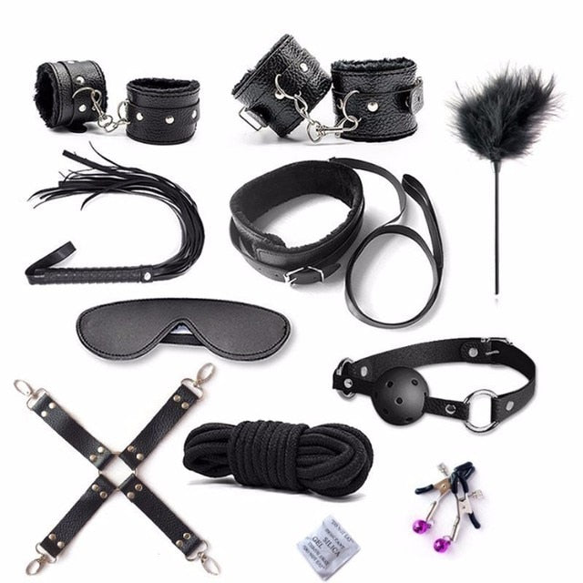 Regardless of where you want to start, this set is built to bring you the most pleasure. Each piece is adequate from quality vegan leather, nylon, and plush - all top-grade materials. It's a ten-piece set that's available in four colors. With all the items, there is no limit to what you can do. Use the wrist and ankle cuffs for some mild restraint play; break out the feather tickler if you have a partner that's very ticklish and you want to make things interesting.