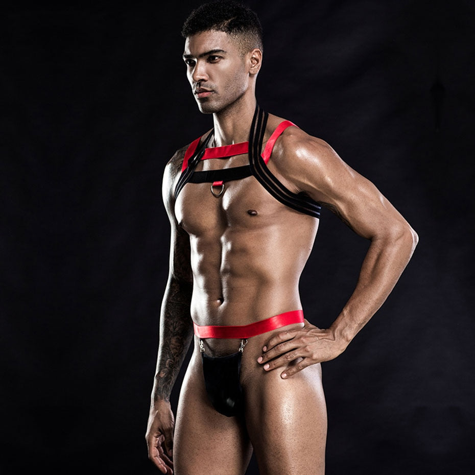 This Bondage Harness + Jockstrap Set (2 Piece Outfit) is to die for. Say no to boring, conventional underwear and get this steaming-hot, two-piece that's all-around awesomeness.