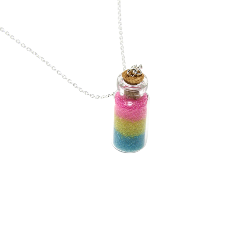 Bottled Pansexual Love In A Glass Vial Necklace Product Details: