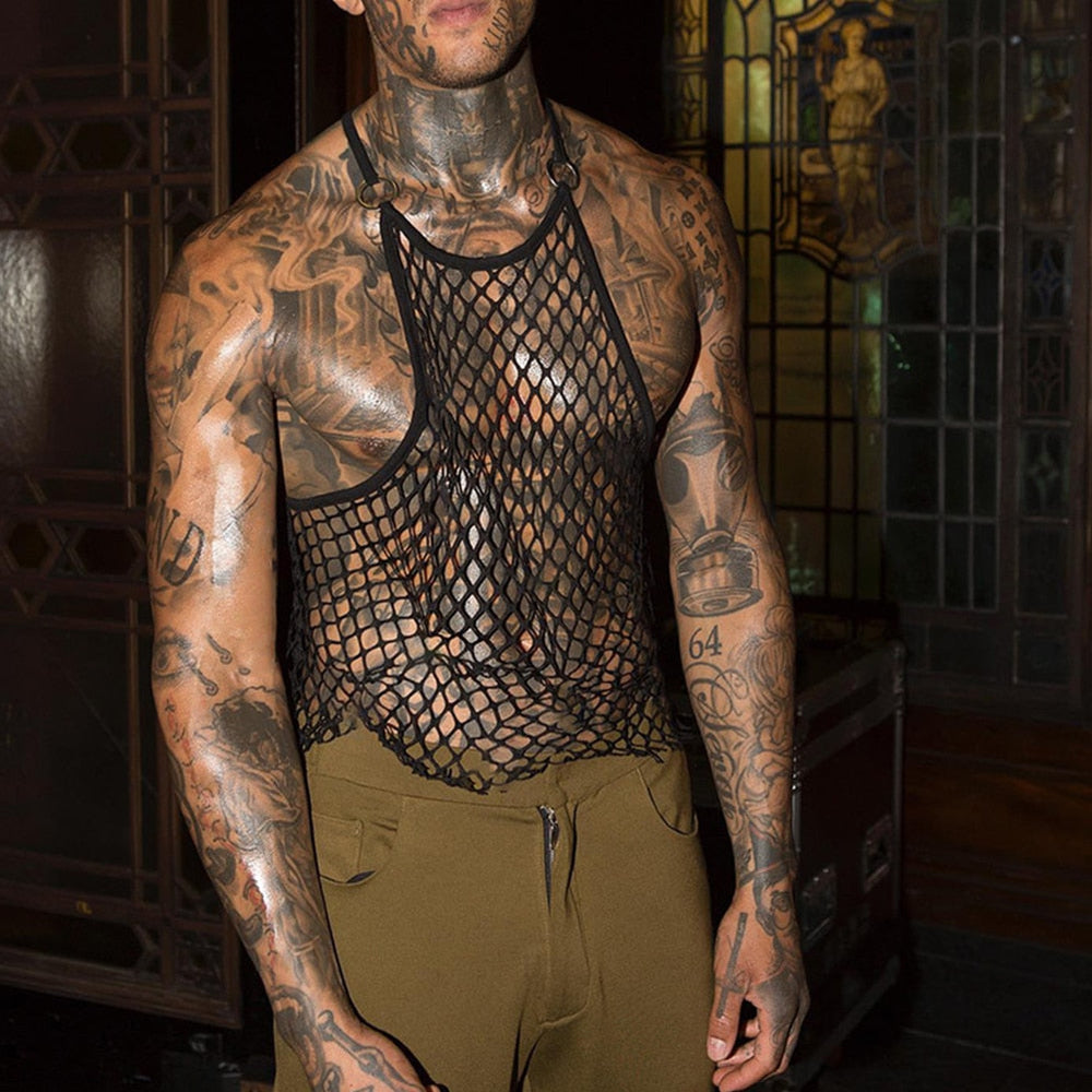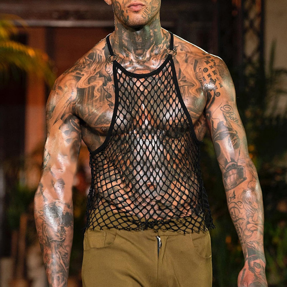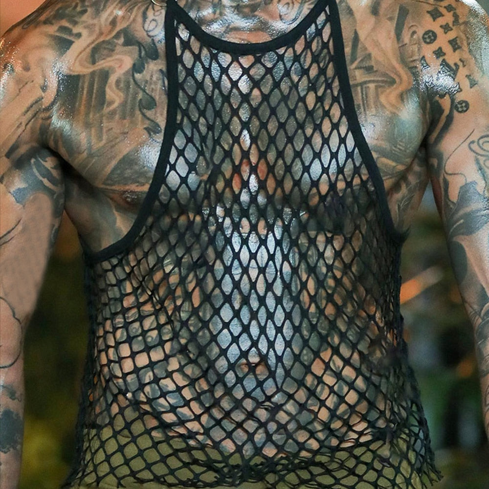 This is the tank that plays peek-a-boo with your pecs, winks at your washboard abs, and gives a nod to your naughty side. With its see-through mesh, you're not just joining the party; you're the life of it. A flirtatious tease of skin here, a suggestive glimpse there – it’s like the perfect dating app profile but in wardrobe form. And just like the most enticing profiles, it leaves just enough to the imagination to keep them swiping right.