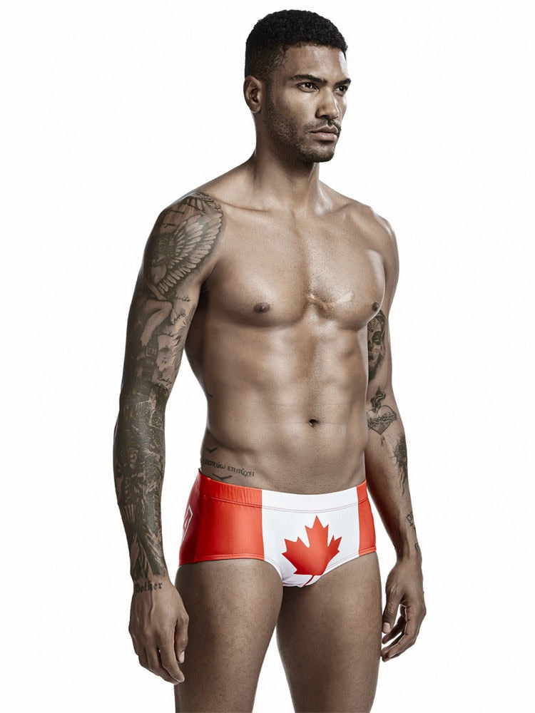 Let's get soaking wet! Lap up those cosmic rays and show off your gorgeous body in our funky and sexy Canada Flag Swim Trunks. The lifeguard on duty will have difficulty not staring at that booty of yours. Anchors away, you're off to bigger and better things!