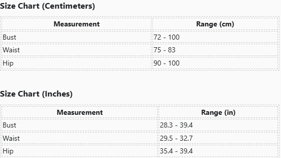 | Bust | 28.3 - 39.4 |