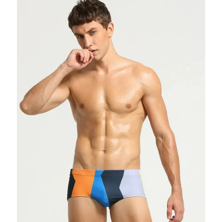 The geometric pattern and bold colour blocking are a nod to modern art and high fashion, ensuring you look like a walking masterpiece. Whether you’re catching waves, soaking up the sun, or just enjoying a beachside cocktail, these trunks are guaranteed to make you feel confident, sexy, and absolutely fabulous.