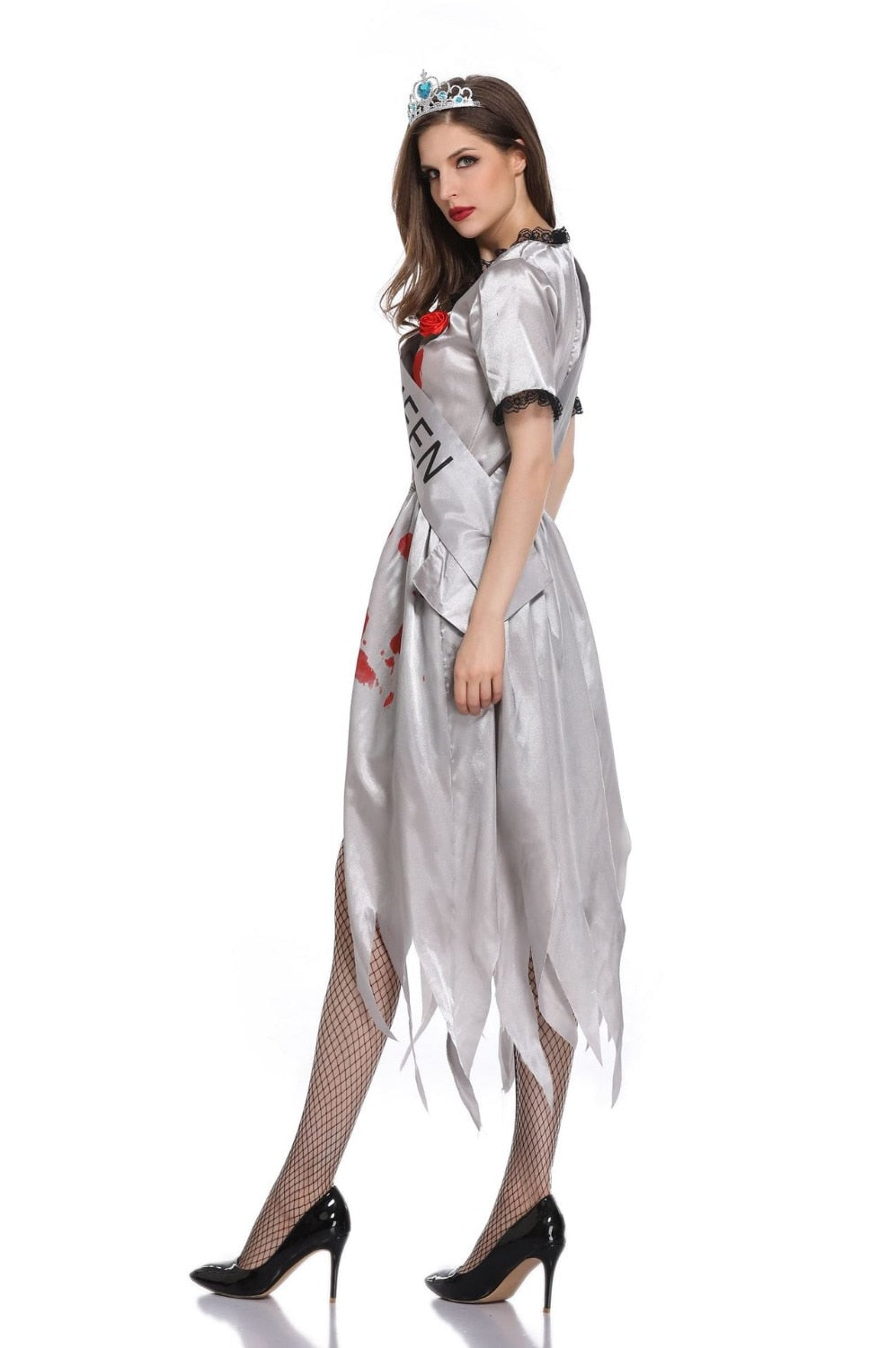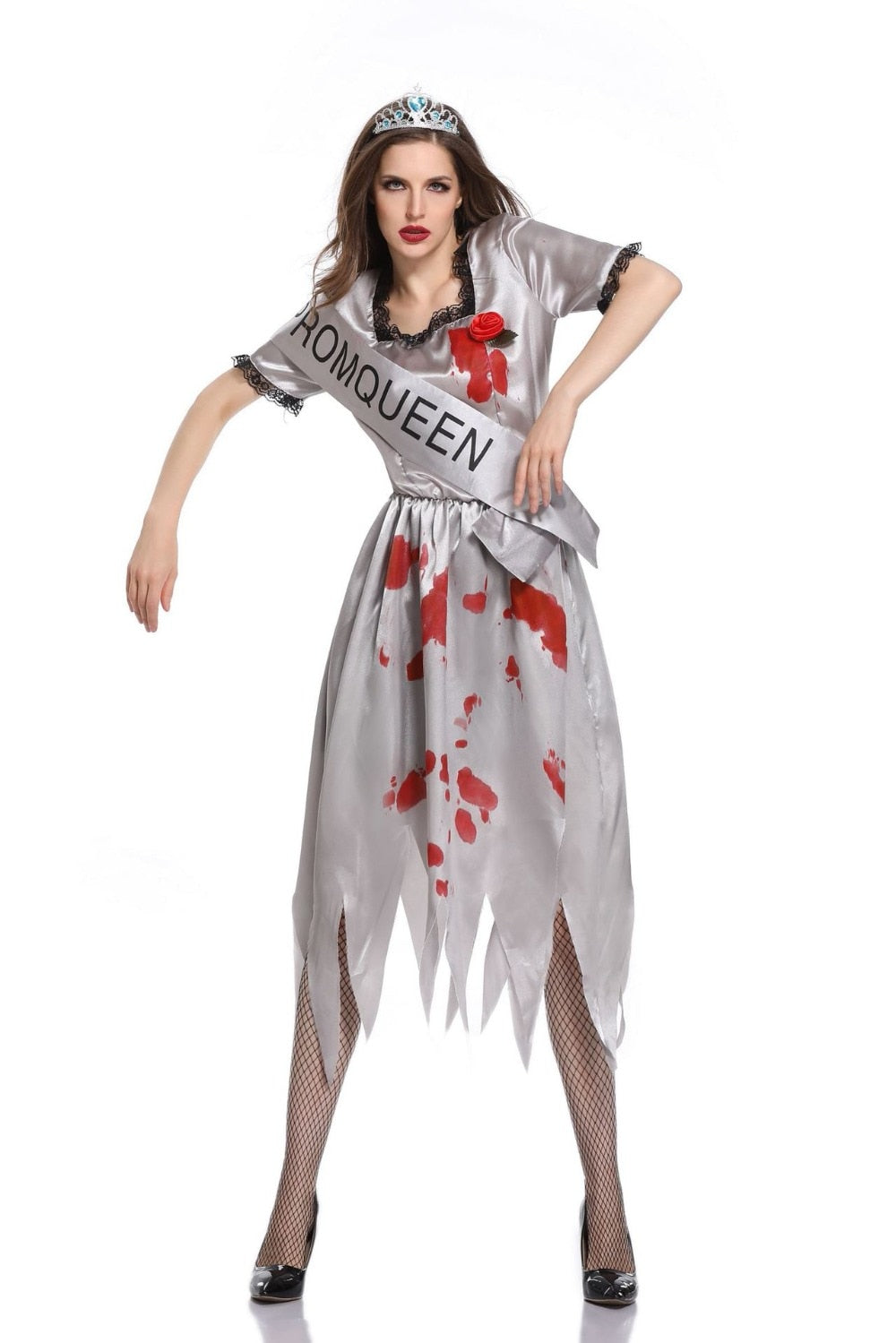 You’re sure to make an immediate impression in this bloodstained prom dress, though it is suitably modest if you would rather avoid the more unwanted sort of attention – that is, male leering or the male gaze. The costume also comes with the tiara, so everyone will know who is Queen.