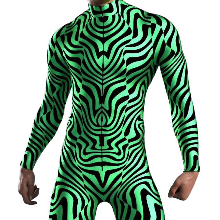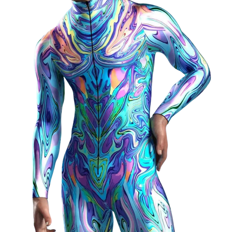 Imagine slipping into this second skin, each curve and line of the design accentuating your form, transforming you into a vision of futuristic fantasy. It's humor and sexiness interwoven with the spirit of pride, making every movement a statement of freedom and every glance a challenge to the norm.