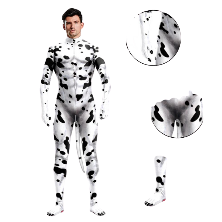 Get ready to channel your inner fabulous with the 'Dalmatian Zentai Body Suit With Tail,' the ultimate costume for those who love to stand out with spots! This is no ordinary body suit; it's a bold statement of identity and style, crafted specifically with the queer community in mind. So, prepare to turn heads and capture hearts as you unleash your playful side, one spot at a time.