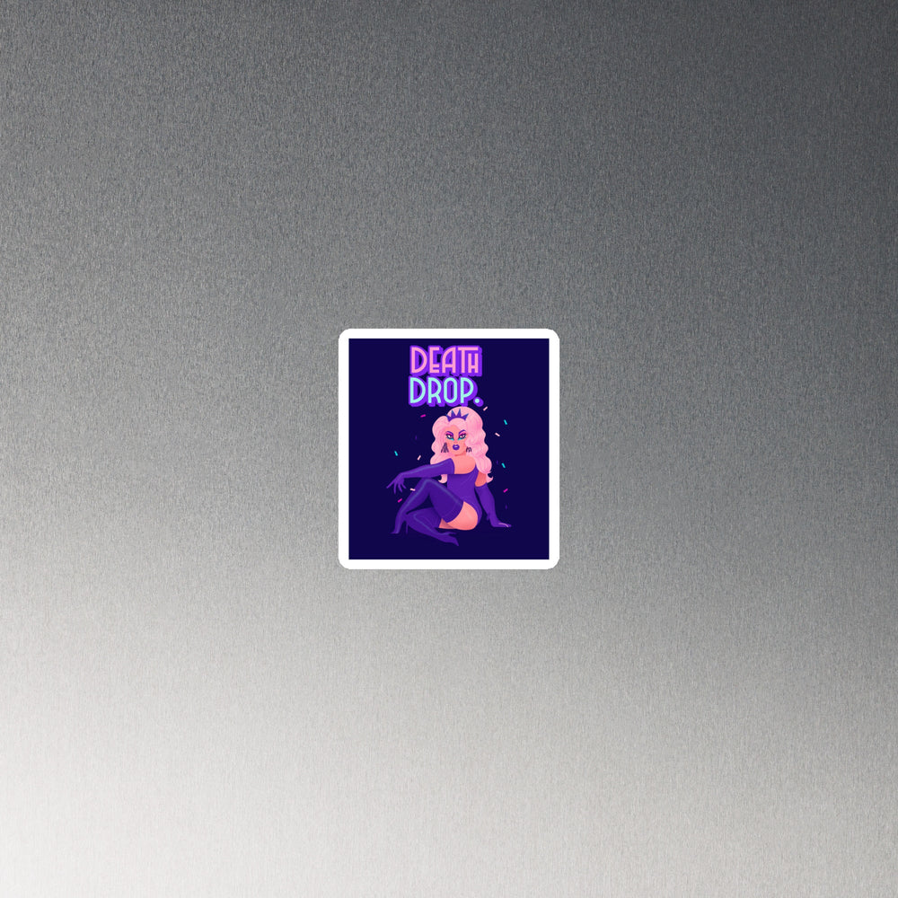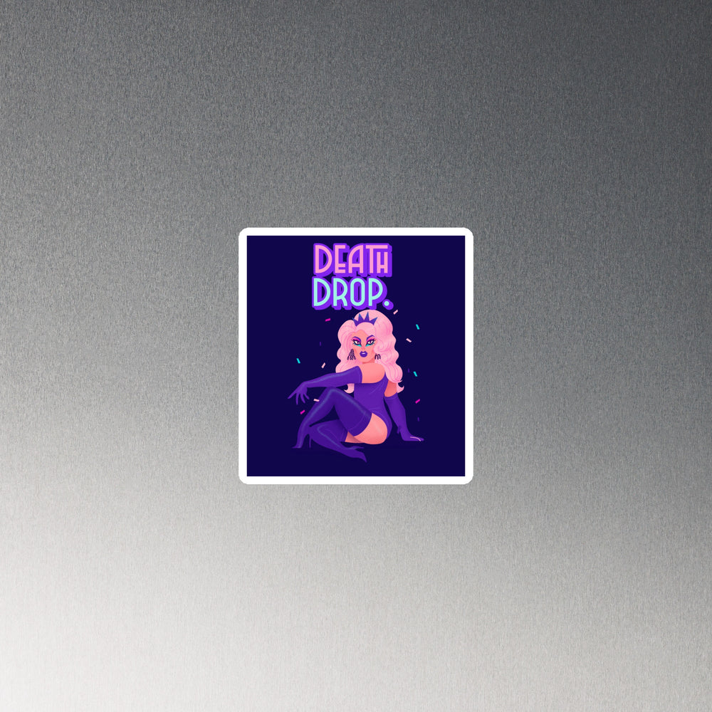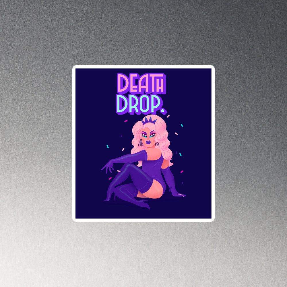 Crafted from the most supple 0.5 mm vinyl—for flexibility is our mantra—and topped with a matte finish so luxurious it could waltz down the runways of Milan, this Death Drop Magnet stands not just as a magnet but as a vibrant proclamation of style. Its magnetic black backing, steadfast as the legacy of legendary divas, elevates the Death Drop Magnet from mere functionality to a beacon of identity and elegance.