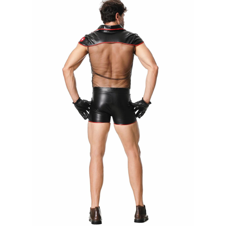 This costume merges bold, fiery aesthetics with tantalizing transparency, crafted from seductive mesh that leaves just enough to the imagination, paired with PU accents that gleam under any lighting. It’s perfect for those who love to play with danger and delight in the night. Embrace the allure of the forbidden and the thrill of the night as you slip into a costume that’s as bold as it is bewitching.