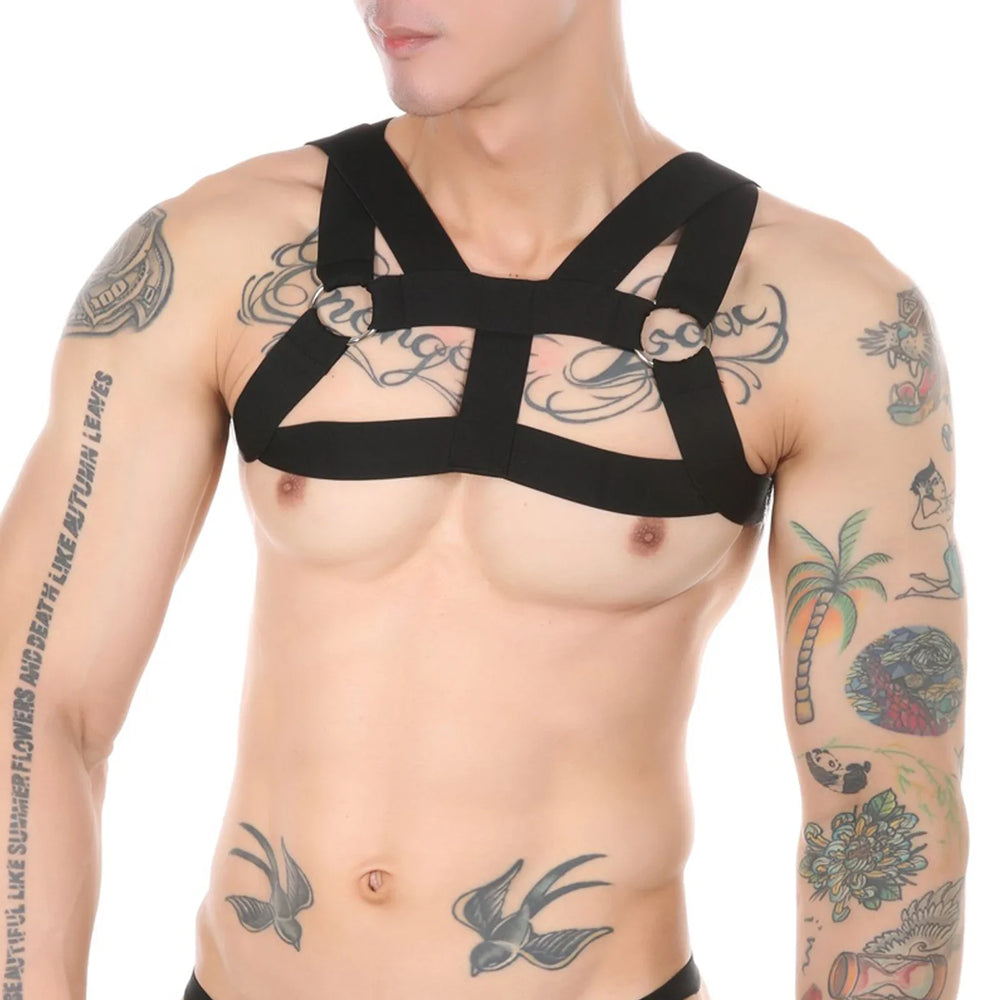 We know our fellow gay party/circuit qweens out there love to wear jaw-dropping accessories, so for them - let us introduce this gorgeous Elastic Double Shoulder Chest Harness.