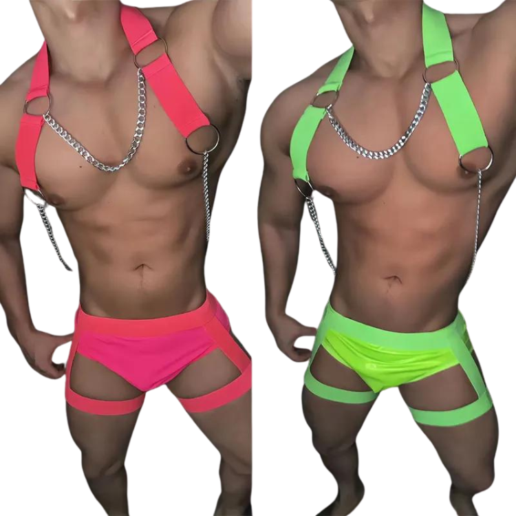 Step into the spotlight and ignite the dance floor with the Electrifying Gogo Dance Gear Costume Set. Designed for the daring and the bold, this ensemble is a tribute to the vibrant spirit of the queer community, blending audacious style with a hint of suggestive charm.