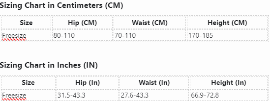 | Size | Hip (CM) | Waist (CM) | Height (CM) |