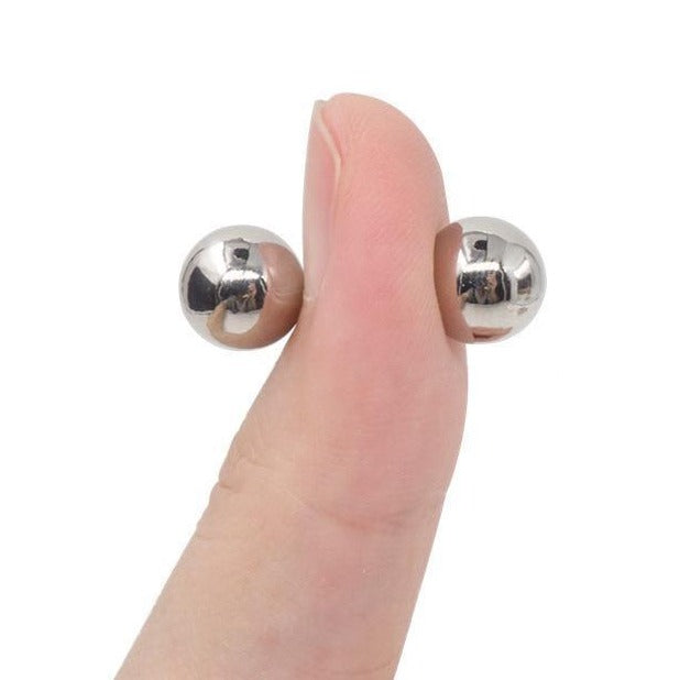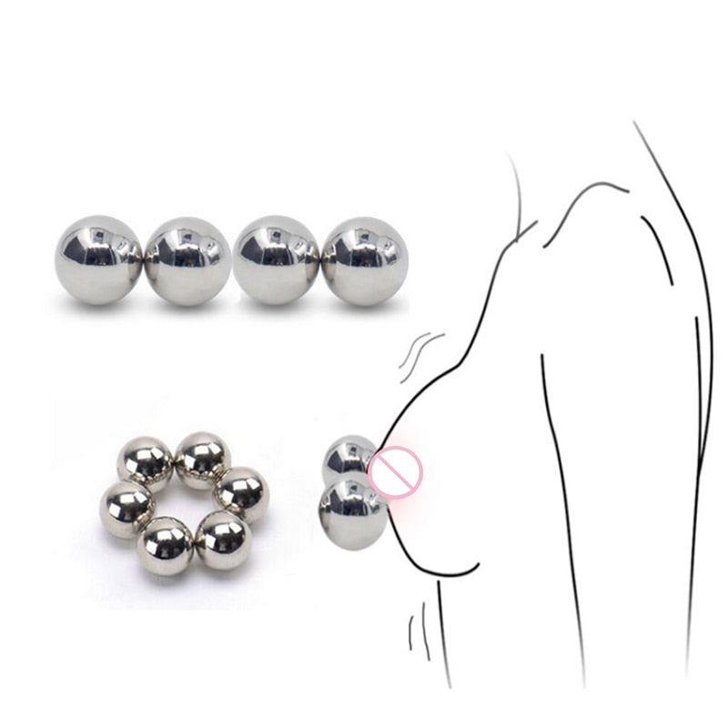 Nipple magnetic balls are typically used in pairs, but you can purchase several and try them out on other sensitive parts like the head of the cock, the balls, and even the lips. Let your imagination roam. They are silver-colored but made of magnetic metal, so they're fairly easy to clean. It's important to store them well, to avoid rust and scratches.