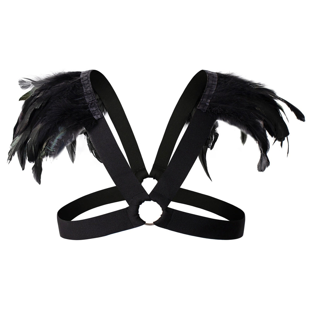Step into your radiant beauty with the Feather Shoulder Harness, a striking ensemble designed to empower and embrace every inch of your body, no matter your identity. Picture yourself as an avant-garde vision, a creature of captivating grace and allure, reminiscent of the flamboyant theatrics of 'The Rocky Horror Picture Show.'