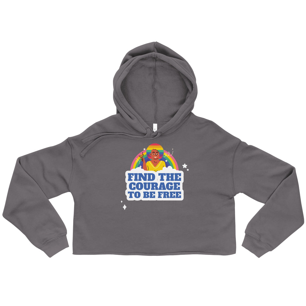 Honey, it's time to let the latest in queer fashion not just enter but absolutely conquer your wardrobe with our breathtaking, unapologetically fabulous statement piece: the Find The Courage To Be Free Crop Hoodie .