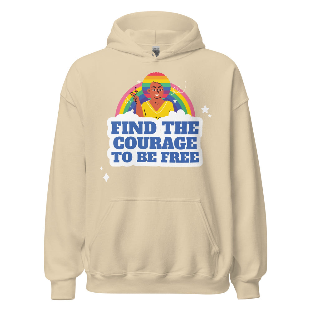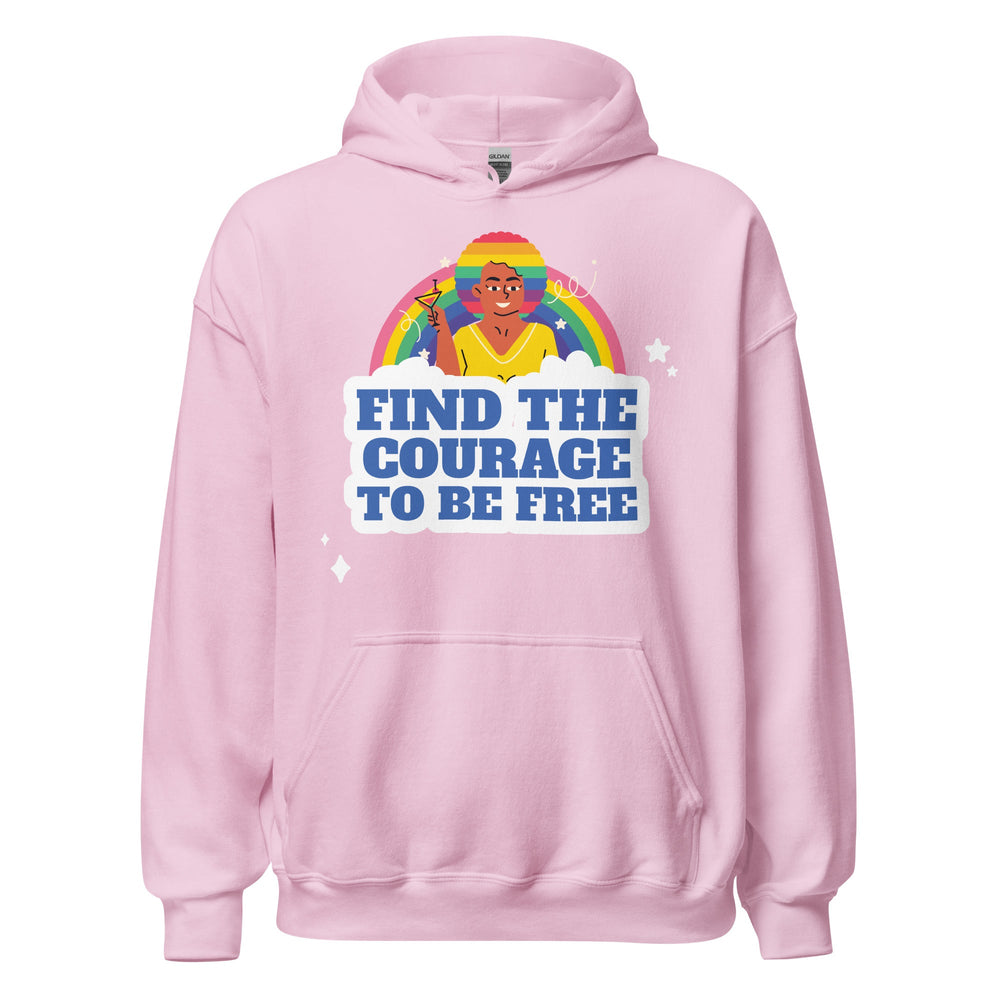 This Find The Courage To Be Free Unisex Hoodie? It’s not just soft, it’s like wrapping yourself in a cloud made of dreams and fierce queer magic. The kind of cozy that makes you wanna strut your stuff from the living room to the club, turning sidewalks into runways and yoga mats into dance floors. It’s so extra, you’ll never want to take it off, serving comfort realness 24/7.