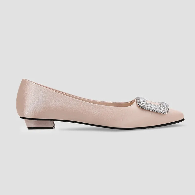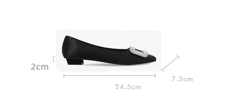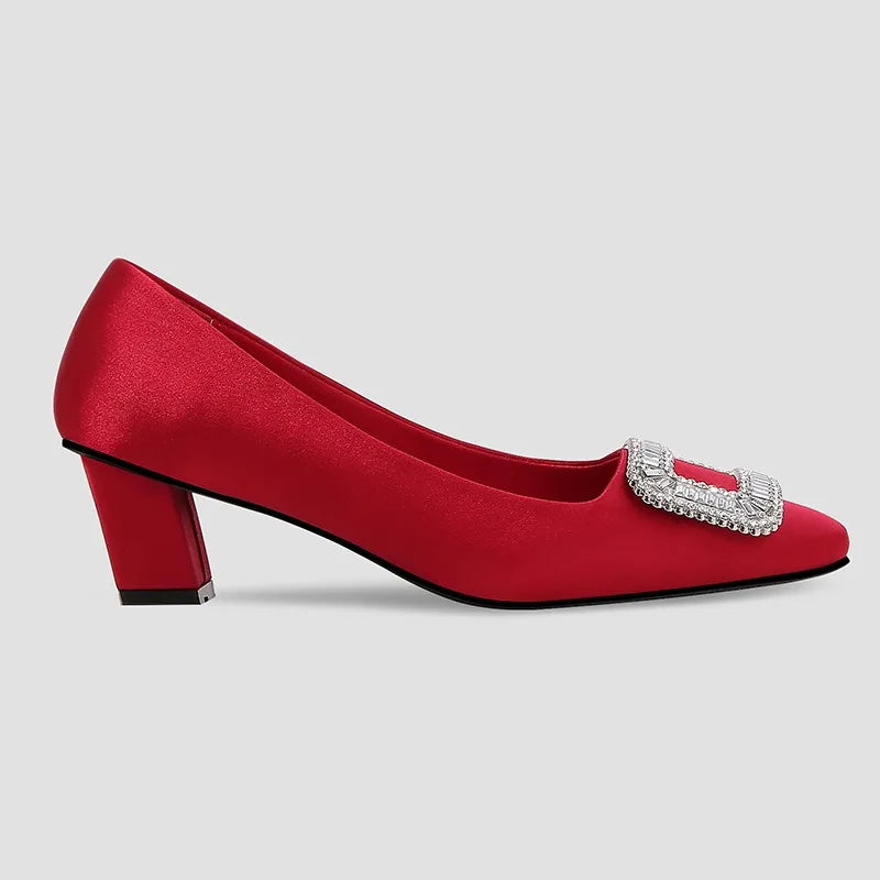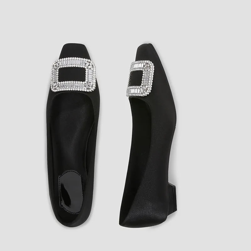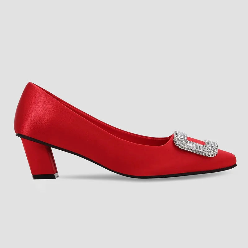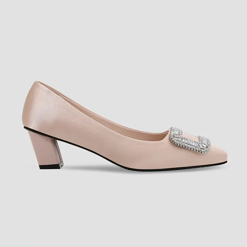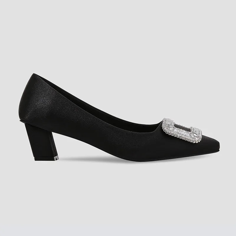 With a modest yet mighty 2–5cm square heel, these pumps give you just the right amount of elevation to feel fabulous without risking a mid-runway tumble. The slip-on design means you can pop them on in a rush before curtain call or your gate closes. And with that rhinestone-studded toe? You're giving glamour with grip, not “help, I’ve fallen mid-lip-sync.”