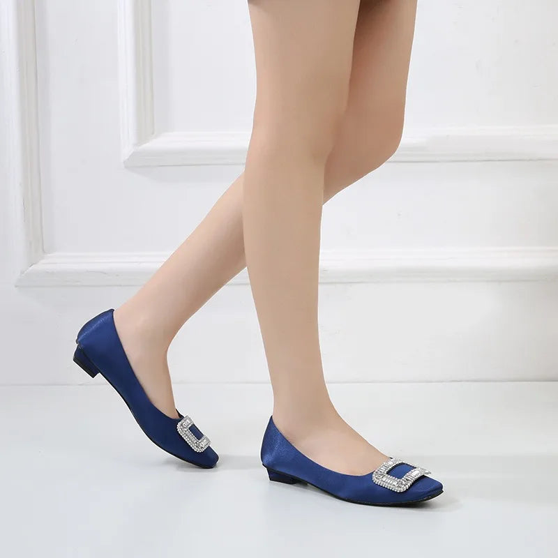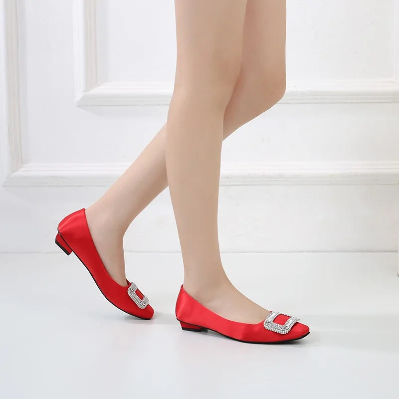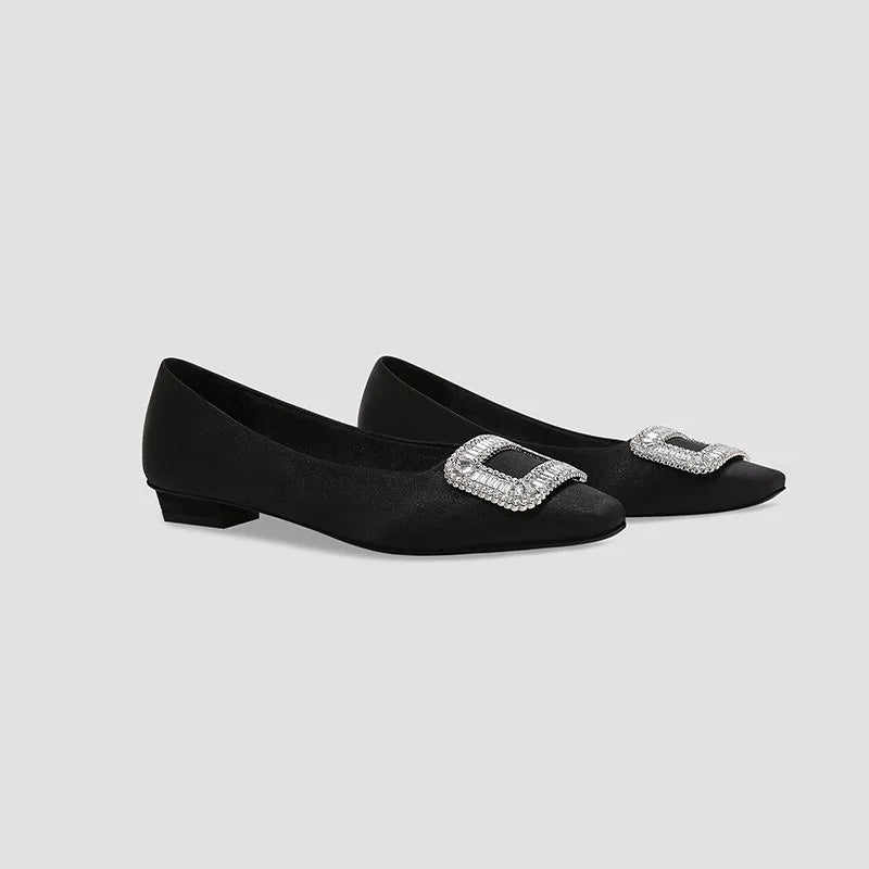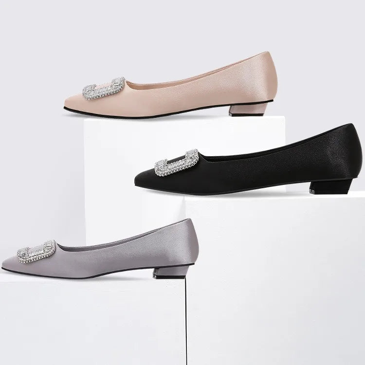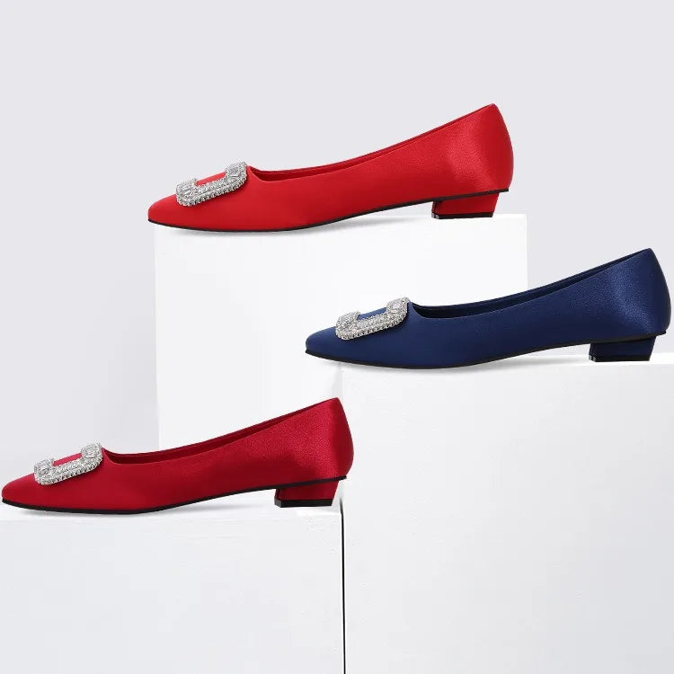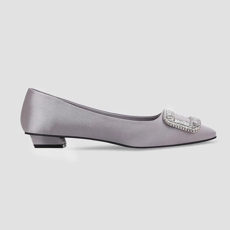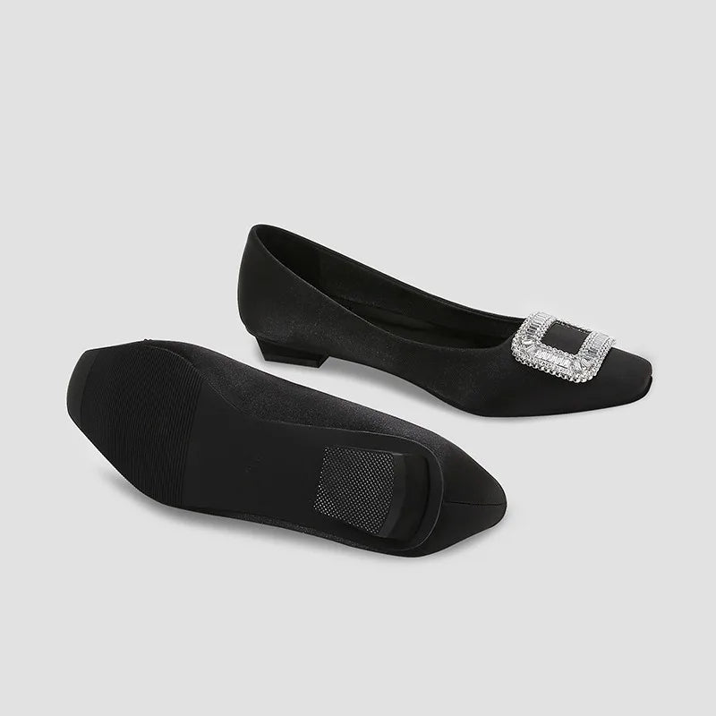 With a modest yet mighty 2–5cm square heel, these pumps give you just the right amount of elevation to feel fabulous without risking a mid-runway tumble. The slip-on design means you can pop them on in a rush before curtain call or your gate closes. And with that rhinestone-studded toe? You're giving glamour with grip, not “help, I’ve fallen mid-lip-sync.”