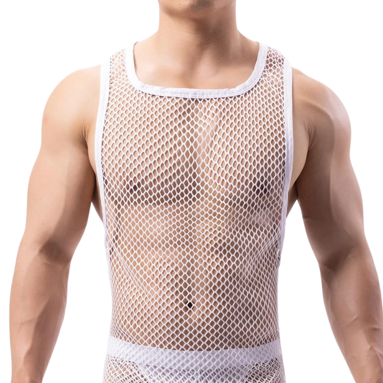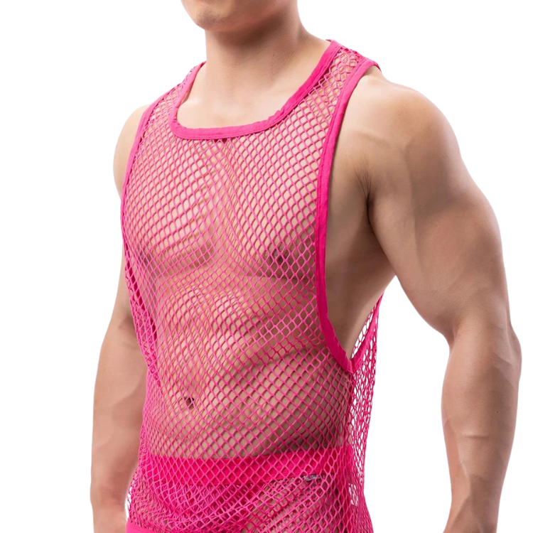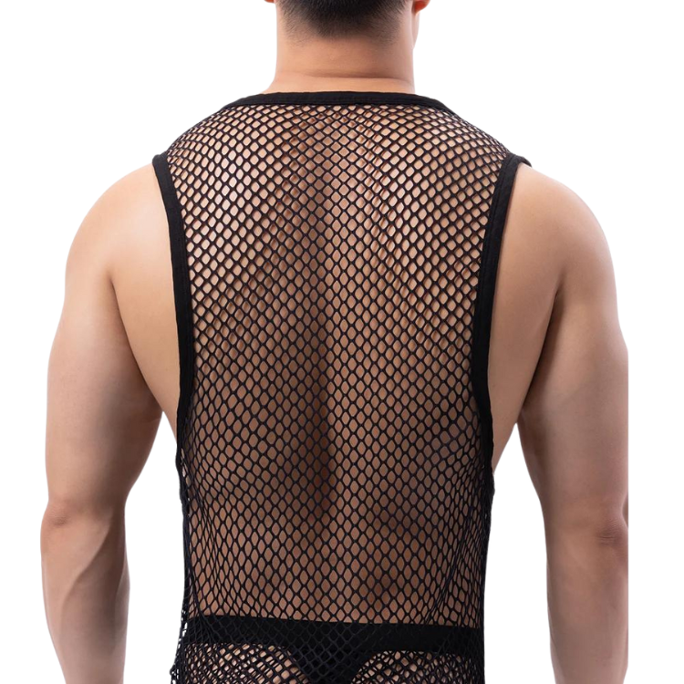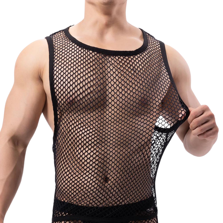 Get ready to serve some serious looks. The Fishnet Fantasy Mesh Tank Top is more than just clothing—it's a statement. A declaration that you are here, queer, and absolutely unstoppable. So, why blend in when you were born to stand out?