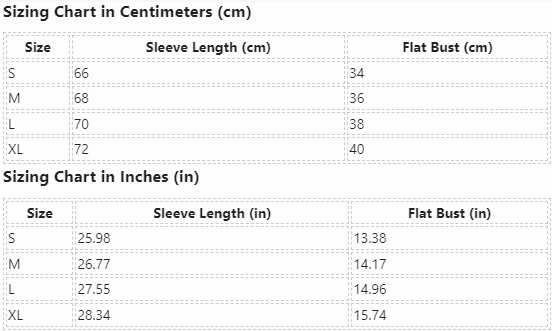 | Size | Sleeve Length (cm) | Flat Bust (cm) |
