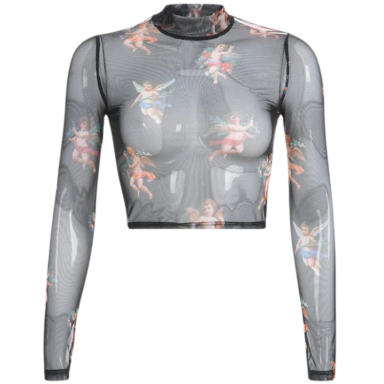 Unleash your inner divinity with our Floral Cherub Mesh Long Sleeve Crop Top. This heavenly piece is not just a top; it's a statement of boldness and beauty, designed to make you feel like a deity descended from the highest realms of fabulousness.