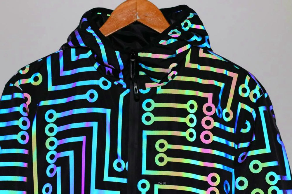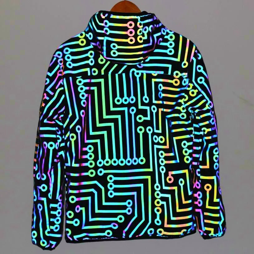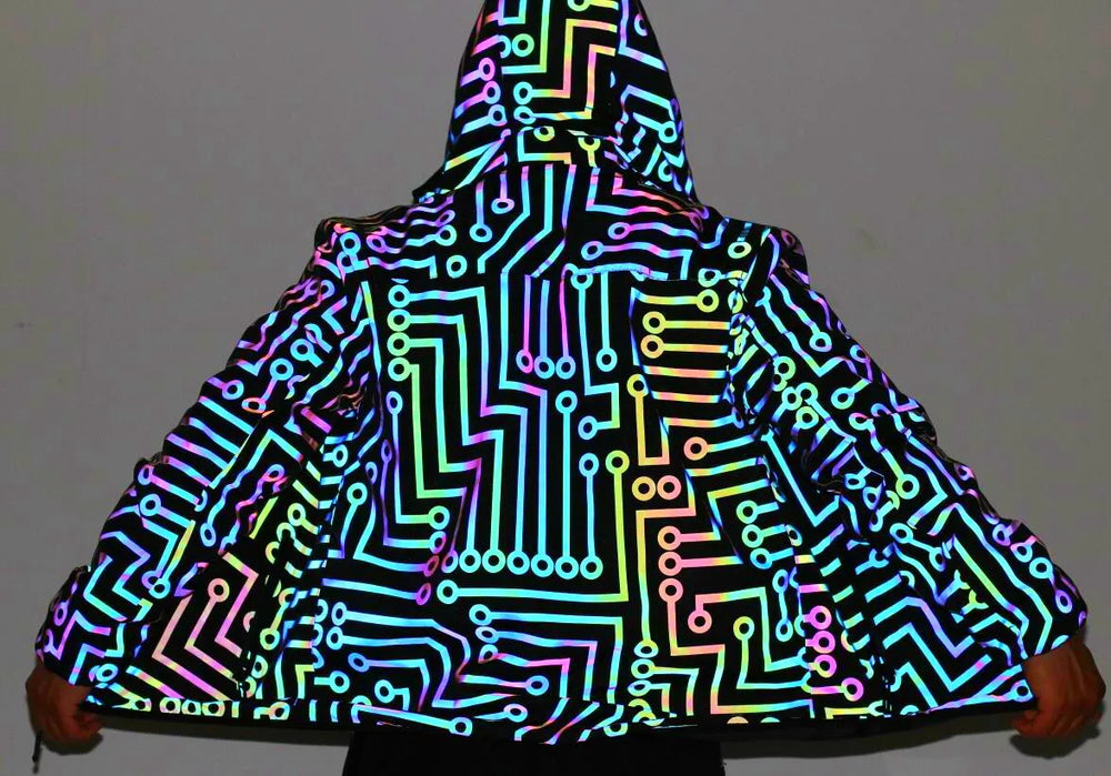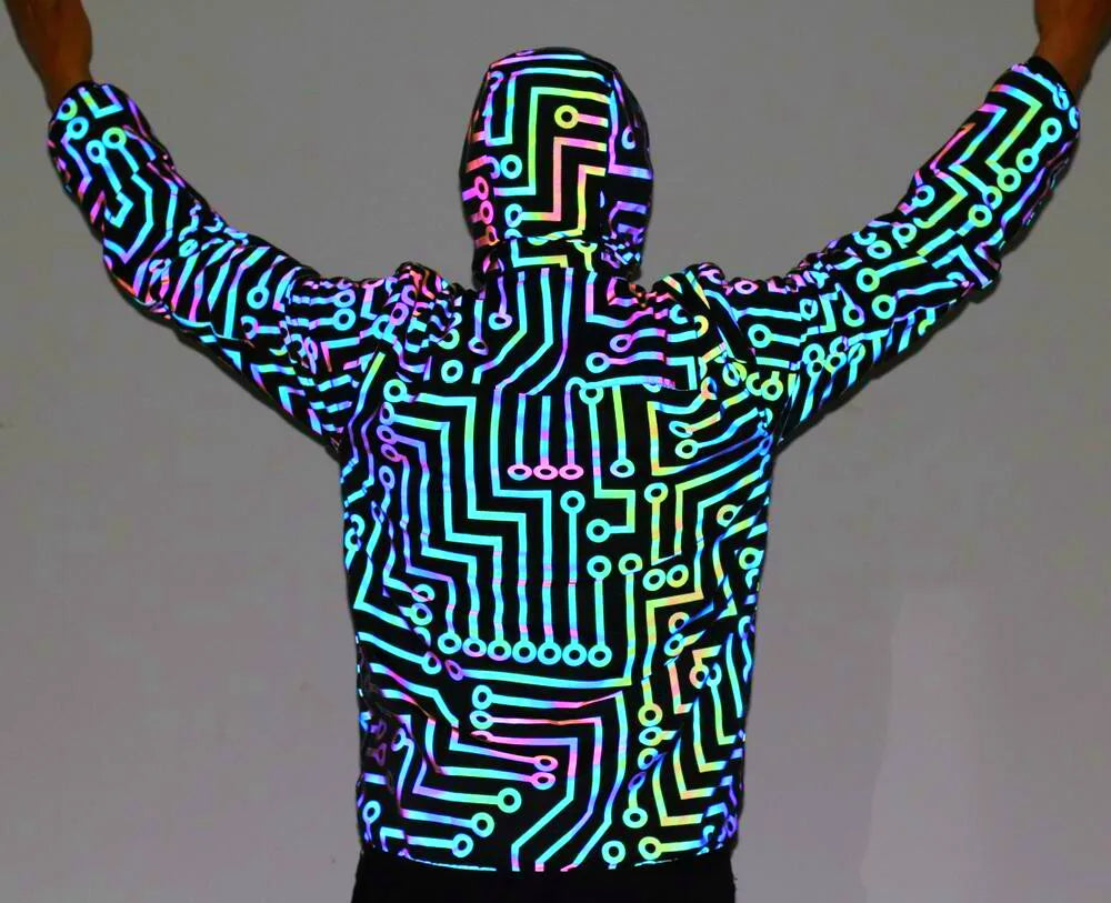 Fluorescent Circuit Reflective Festival Hoodie Jacket Product Details: