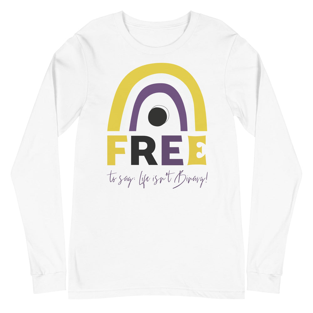 FREE TO SAY: LIFE ISN'T BINARY! UNISEX LONG SLEEVE T-SHIRT PRODUCT DETAILS