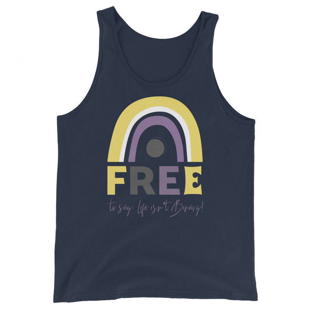 FREE TO SAY: LIFE ISN'T BINARY! UNISEX TANK TOP PRODUCT DETAILS