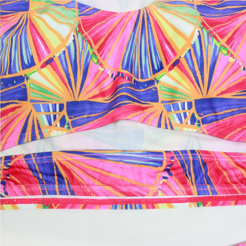 Imagine strutting your stuff down the sands of Copacabana, turning heads at Malibu, or being the very embodiment of beach chic at St. Tropez. With its print pattern, this bikini set is a carnival of colors and an explosion of personality, embodying body positivity and confident allure.