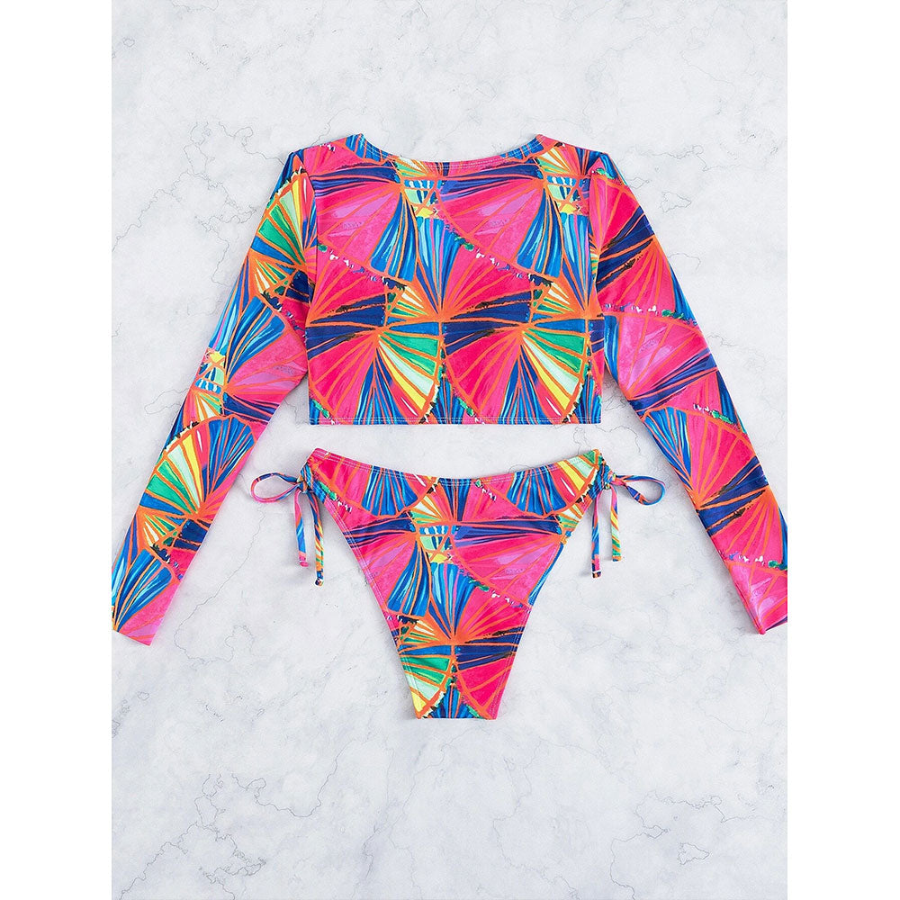 Funky Rash Guard Long Sleeve Bikini Set - Sun, Surf, and Sensational Style!