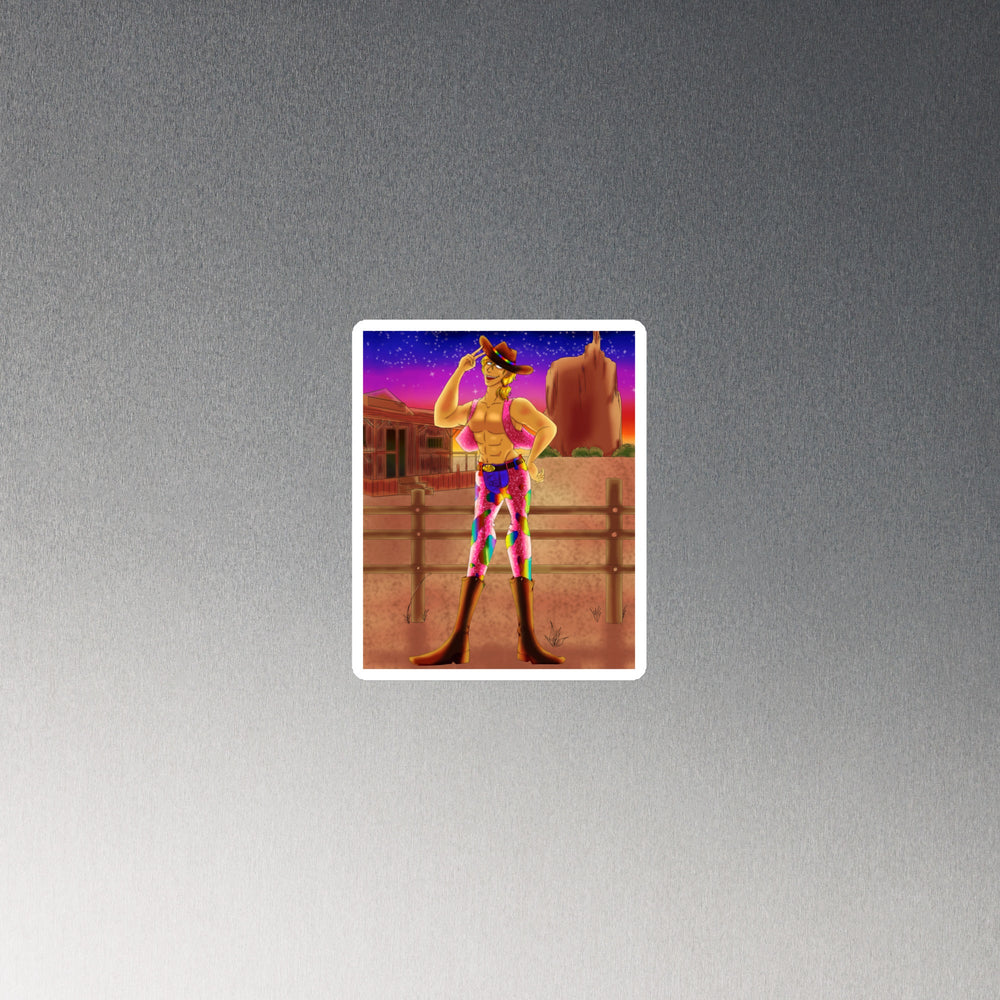 Remember, my fabulous friends, in a world awash with magnets, choosing this Gay Cowboy At Sunset Magnet and its delightful peers is not just a choice—it's an embrace of boldness, beauty, and the unapologetic expression of one's essence. With your Gay Cowboy At Sunset Magnet, your space isn't merely organized; it's a resplendent ode to all things queer, clever, and irrefutably camp, now with the added joy of splendid savings.