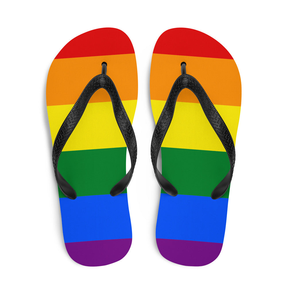 When someone tells you “You’re so gay!” you take it as a compliment, so why would you hesitate to wear these fabulously colorful gay pride flip flops?