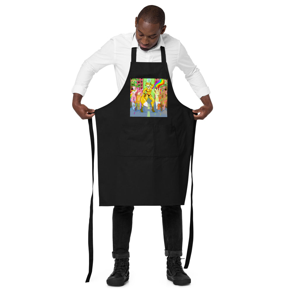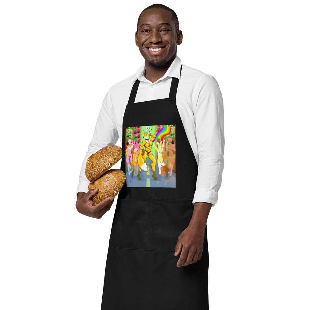 The point is that this queer apron is far from the boring old kitchen-wear your grandma used to have. This organic cotton apron is bursting at the seams with style and pizzazz, with flair and fashion and all kinds of panache. It is an excellent way to liven things up around the home and add a touch of humor, an extra dash of spice to the kitchen. There is no rule that says you can’t be cute and sexy while doing your domestic duties. And the best thing is that you can feel pride at home.