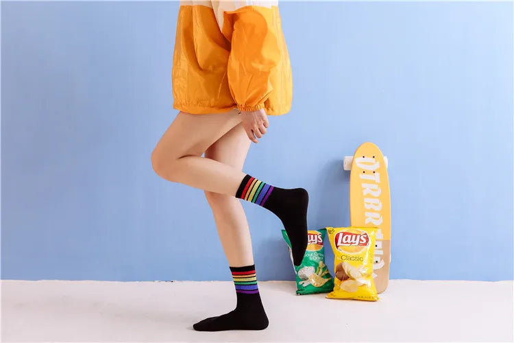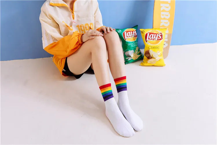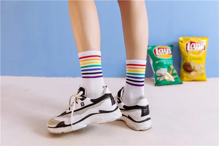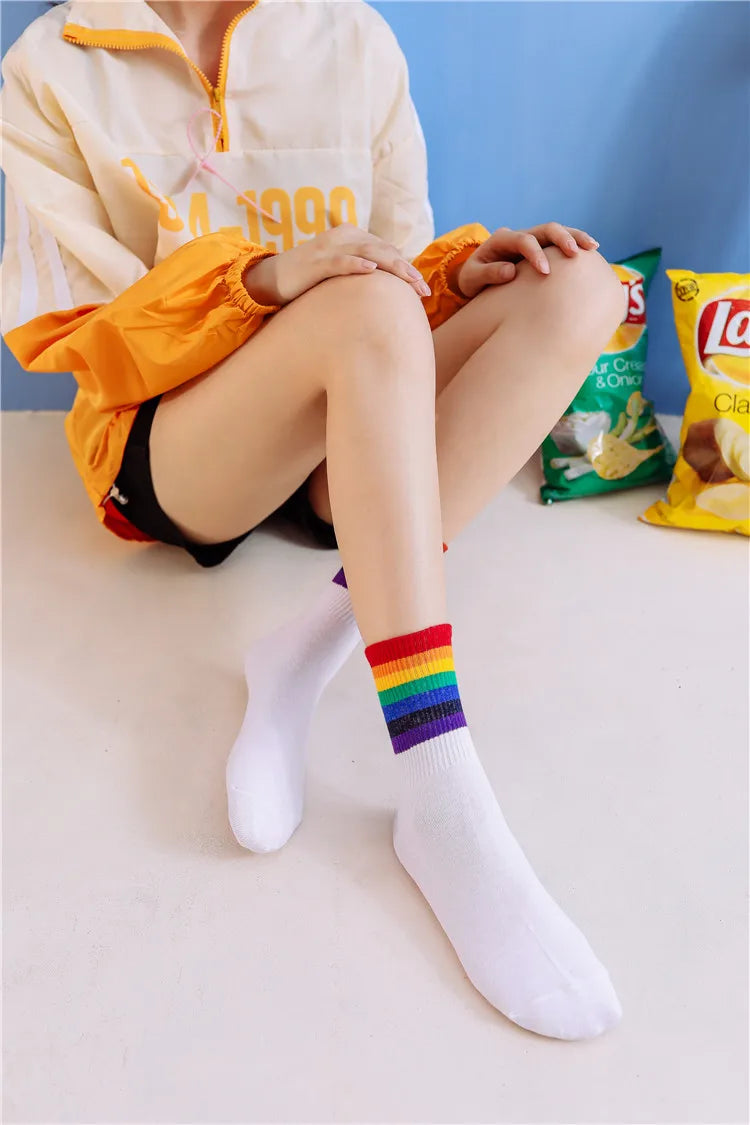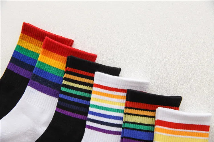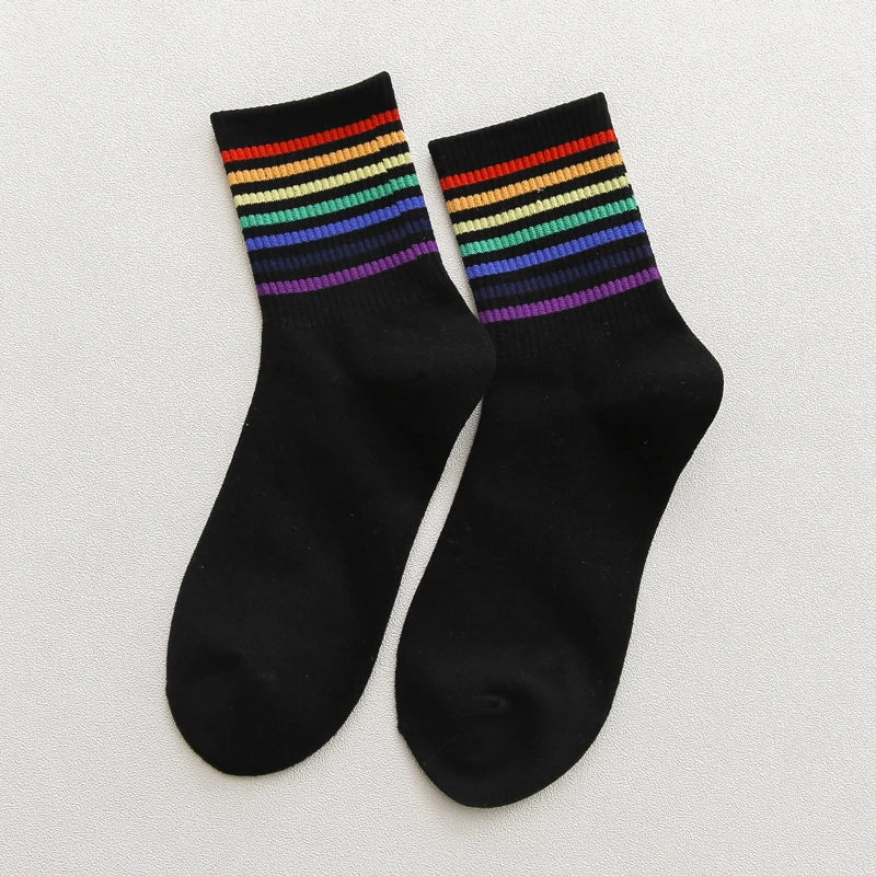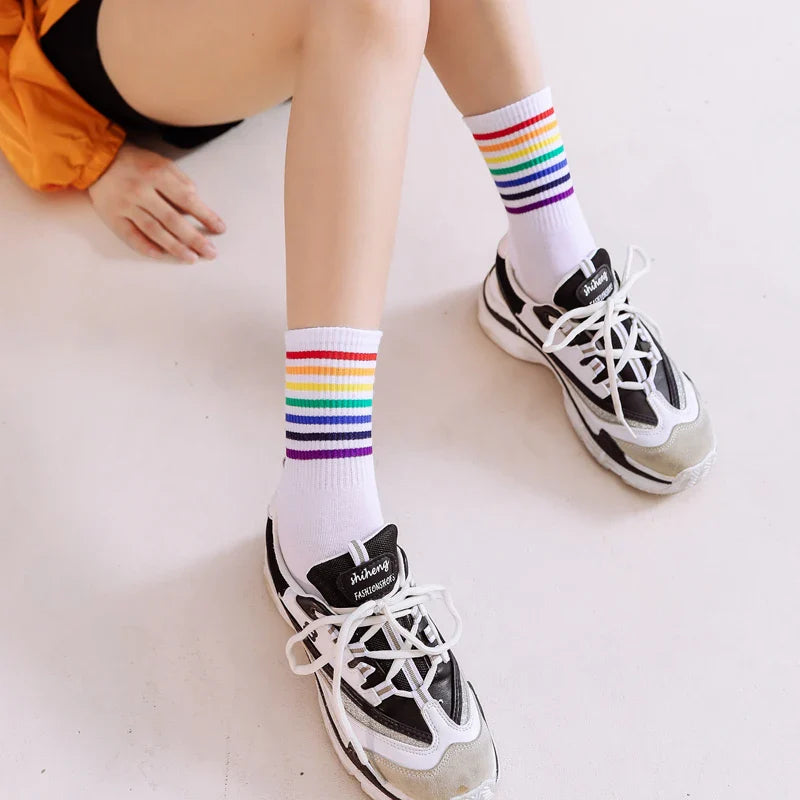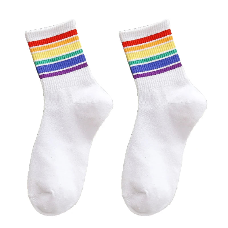 These Gay Pride Socks will add a little pep to your step, while the cotton construction ensures breathability, comfort, and protection.