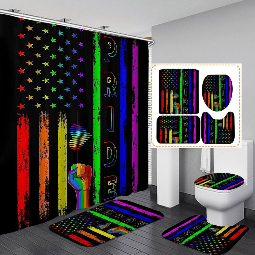 Gay USA Pride 4-Piece Shower Curtain Bathroom Set Product Details: