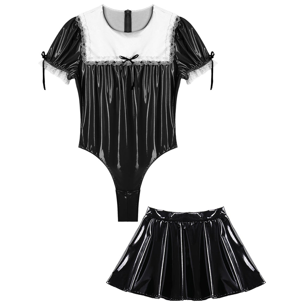 This ensemble is cheeky in spirit and daring in design. The short, frilly skirt and form-fitting bodice are juxtaposed with bold, leather-like material and seductive cut-outs, making it clear that this maid doesn't just clean house, but rules the house. It's perfect for those who love to play with gender norms and celebrate sexuality with a wink and a nod to queer culture.