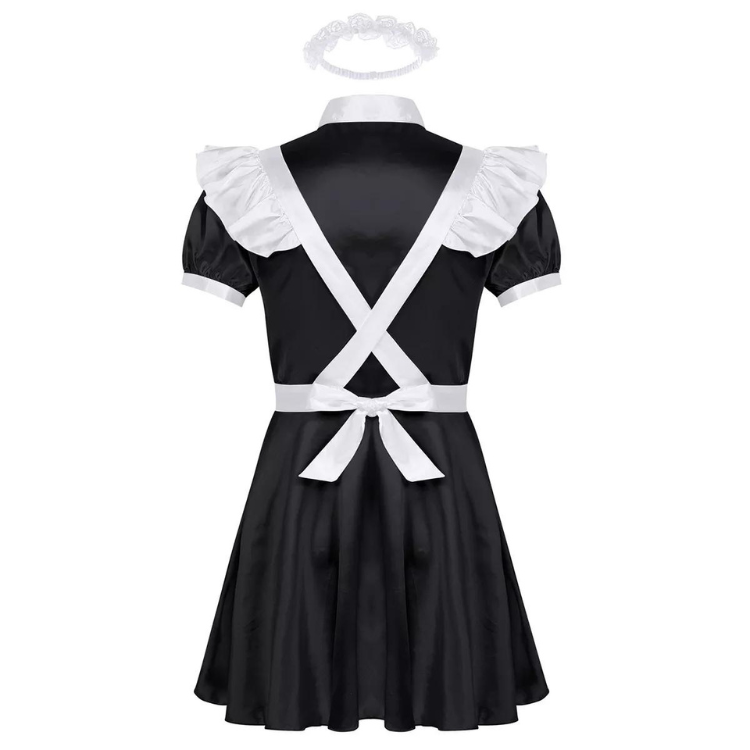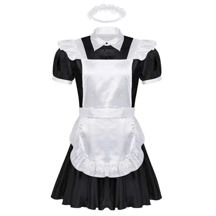 This isn't just a costume; it's an invitation to a party where every guest is celebrated for exactly who they are. Crafted from the smoothest satin that caresses your skin as you move, this ensemble is designed to make you feel both comfortable and irresistible, blending traditional maid aesthetics with a modern twist that defies expectations.